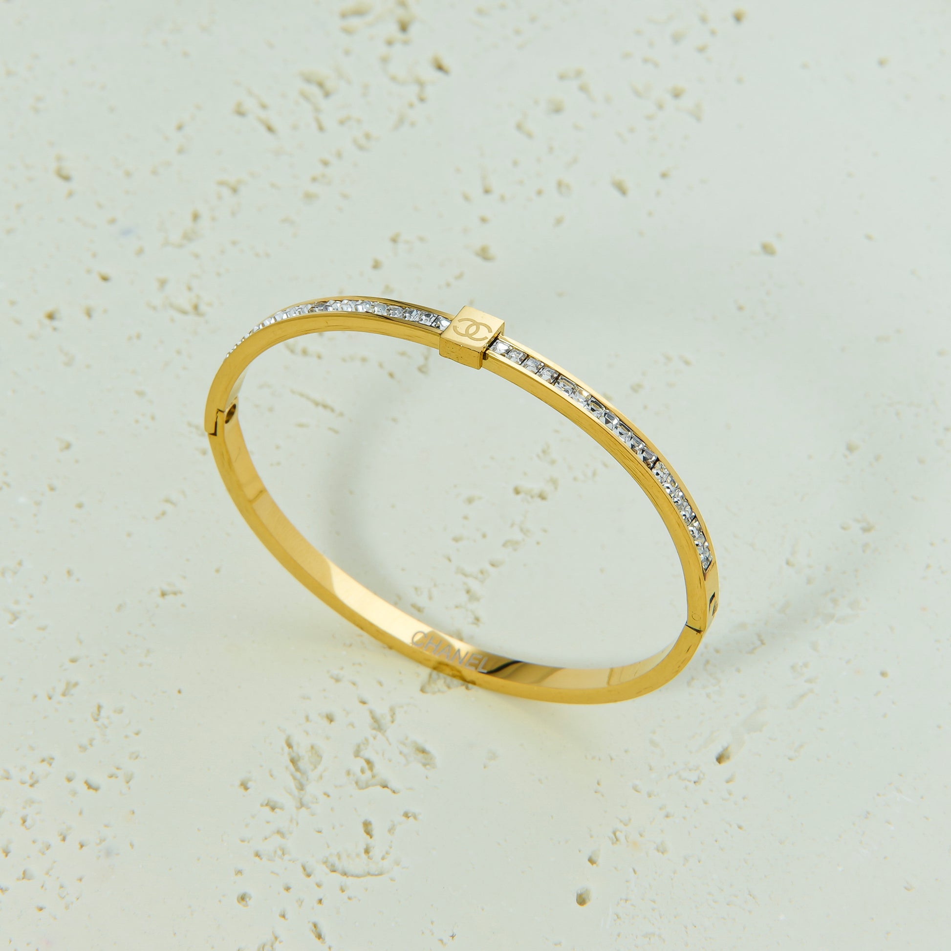 اسوارة معدنية رفيعة وأنيقة – تصميم أصلي فاخر من Chanel مع حبات زركون دقيقة