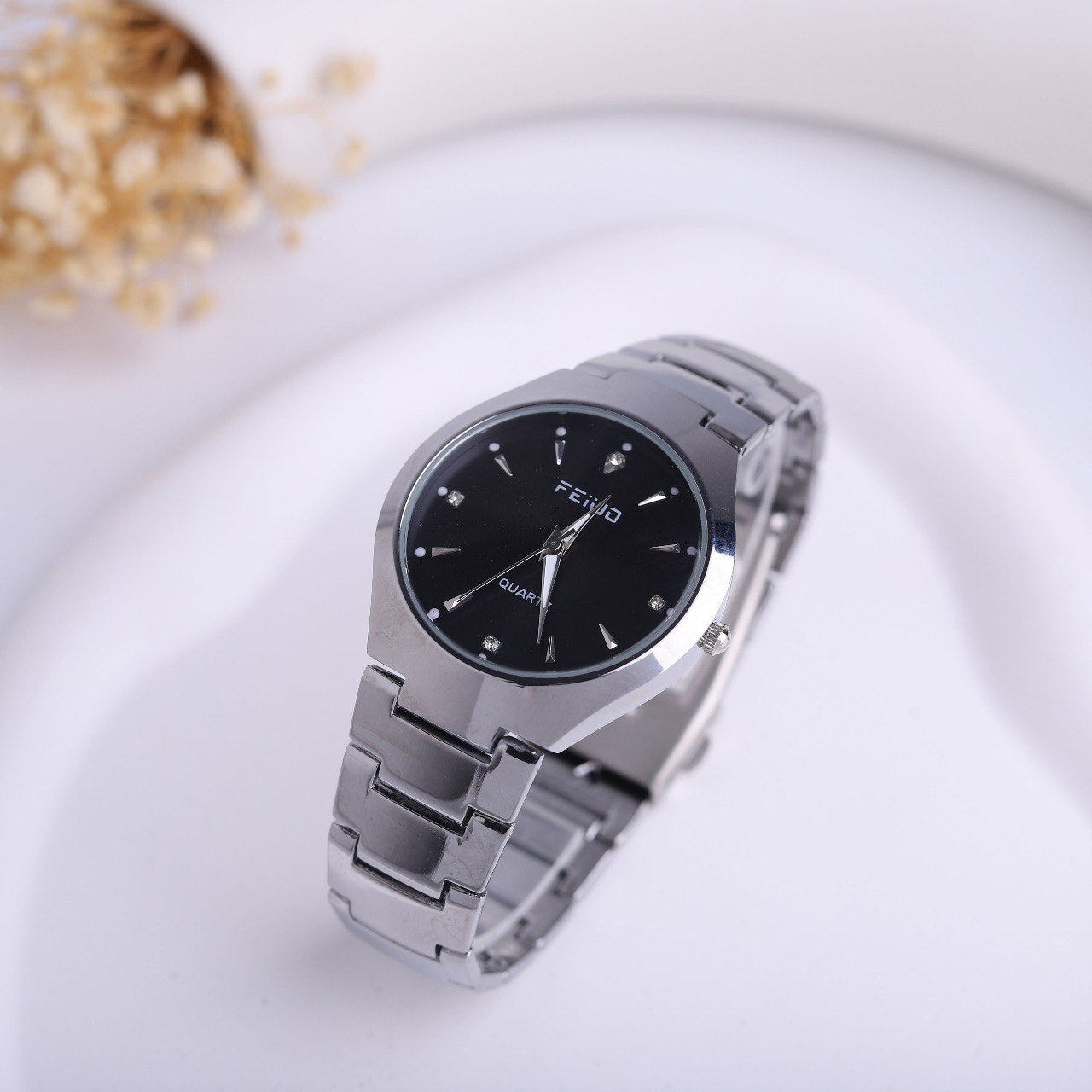 ⌚ الخامة: ستانلس ستيل عالي الجودة بحافة مصقولة فضية.