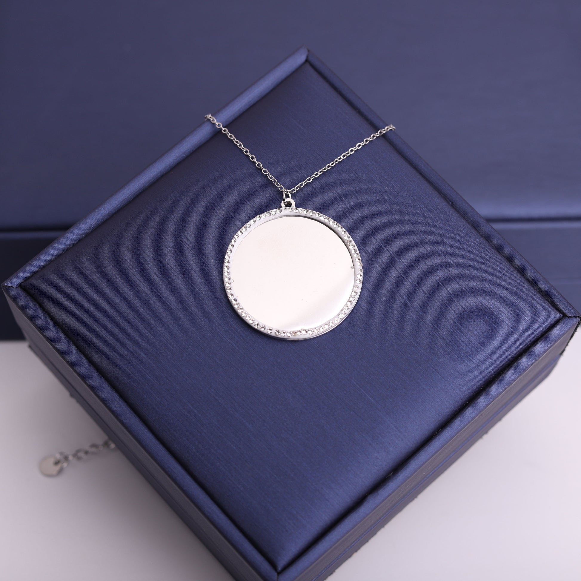 سنسال ستيل عالي الجودة – دائرة محفورة مع إطار مزين بأحجار زركون براقة