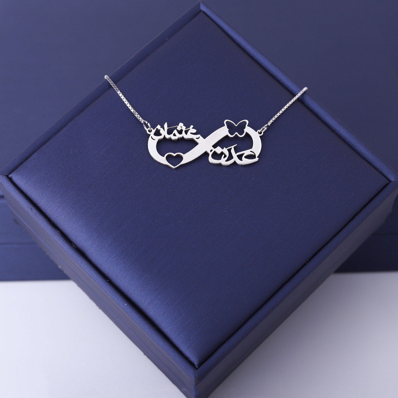 سنسال تفصيل بأسماء مزدوجة على شكل إنفنتي – رمز الحب الأبدي 💞