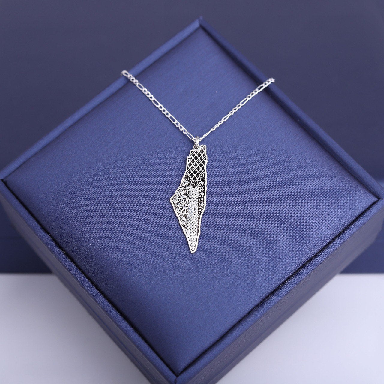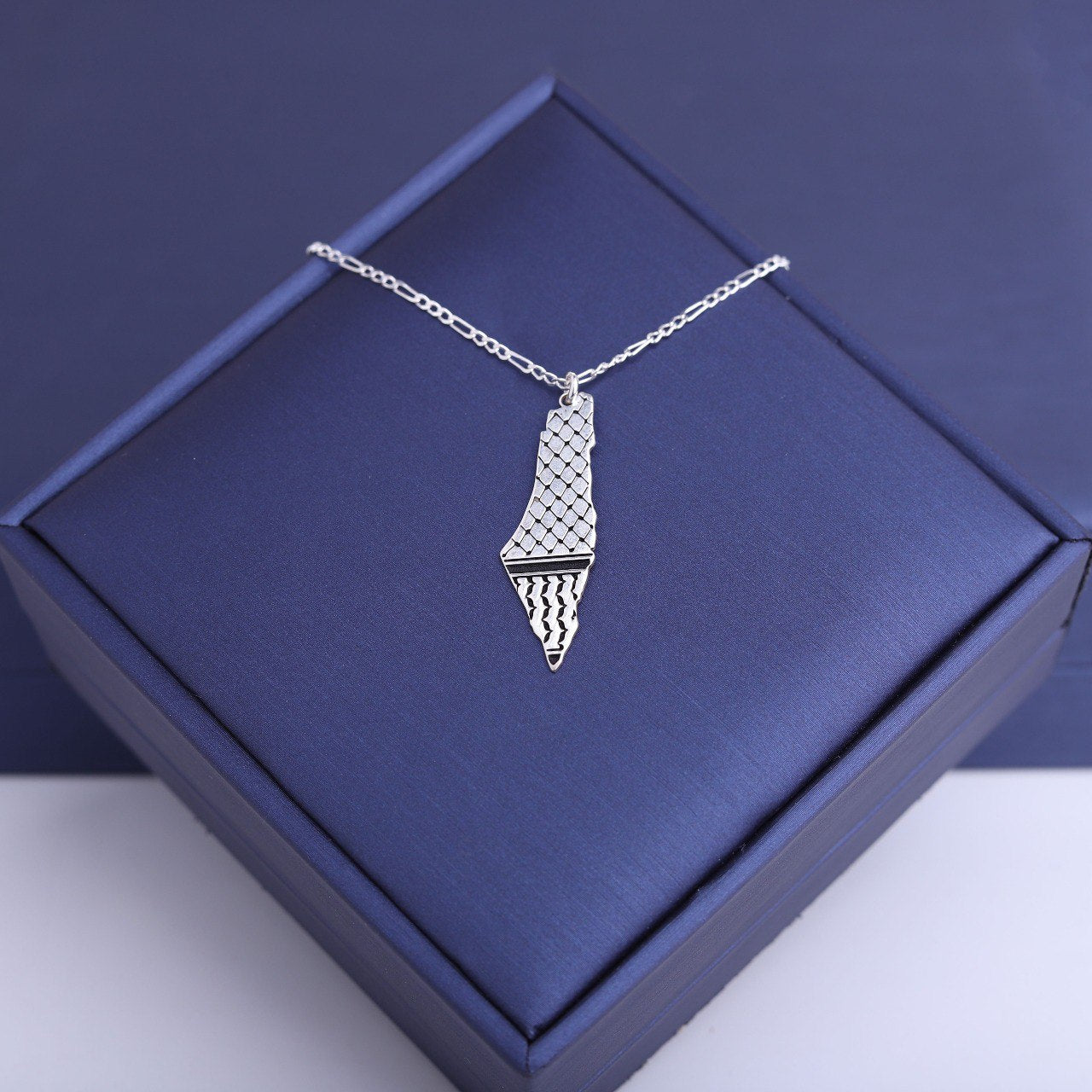 سنسال فضة مخصص – يحمل خارطة فلسطين محفورة بدقة، مع إمكانية نقش عبارة، اسم، أو تاريخ تختاره
