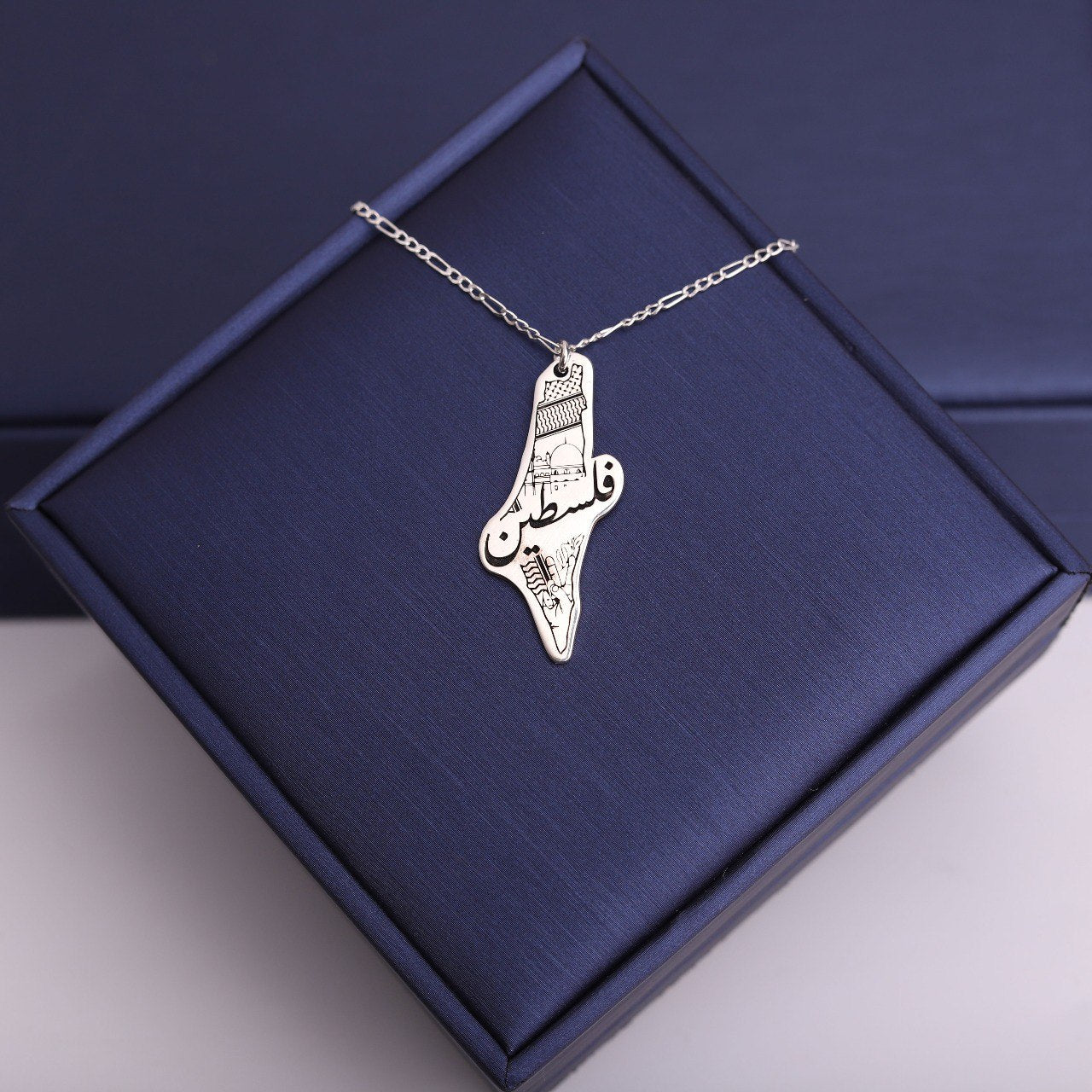 سنسال فضة تفصيل خارطة فلسطين – صمّم عبارتك الخاصة 🖋️
