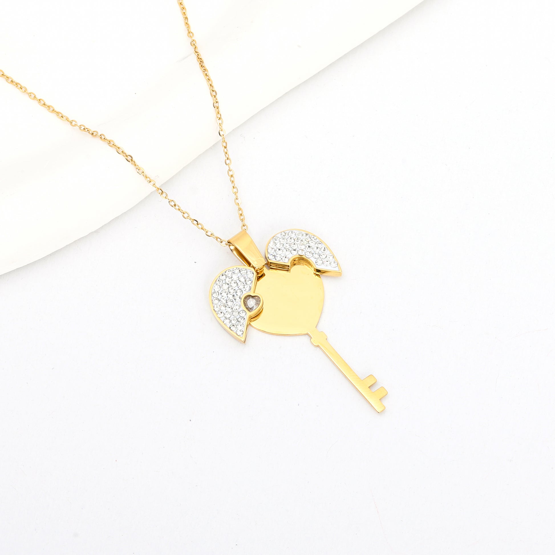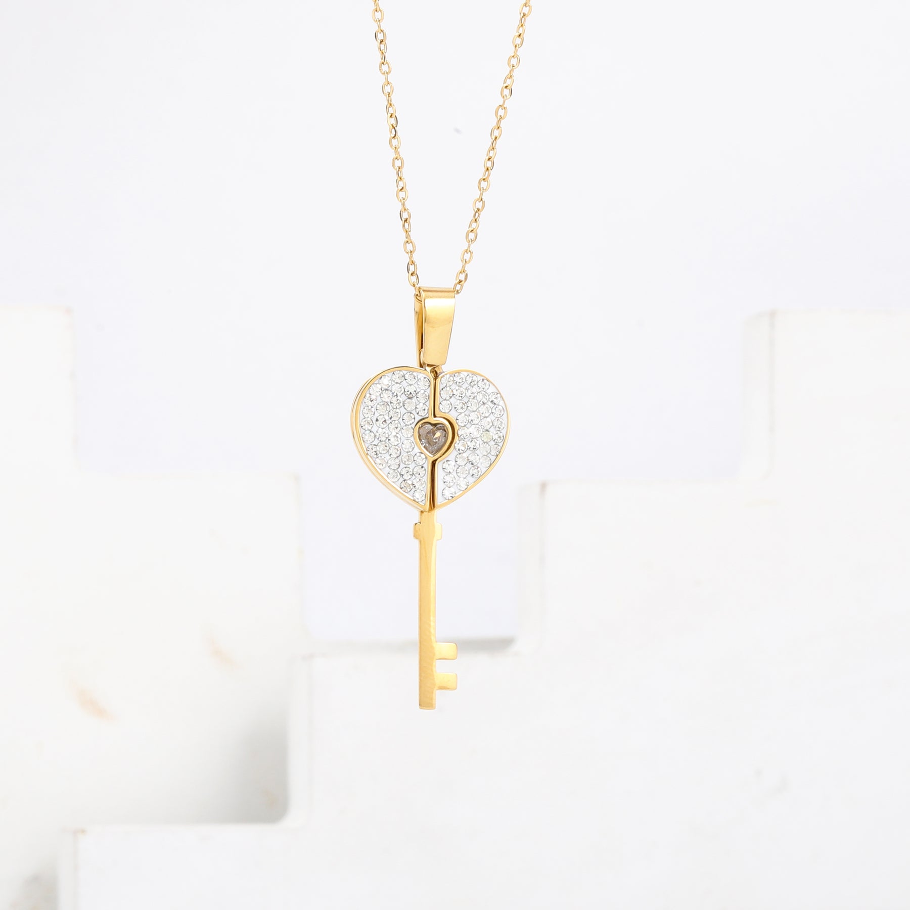 سنسال مطلي/معدن عالي الجودة – مفتاح قلب مزين بأحجار زركون بيضاء