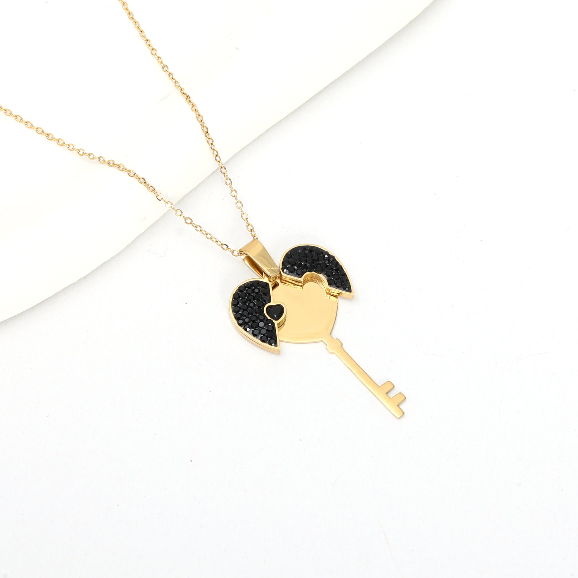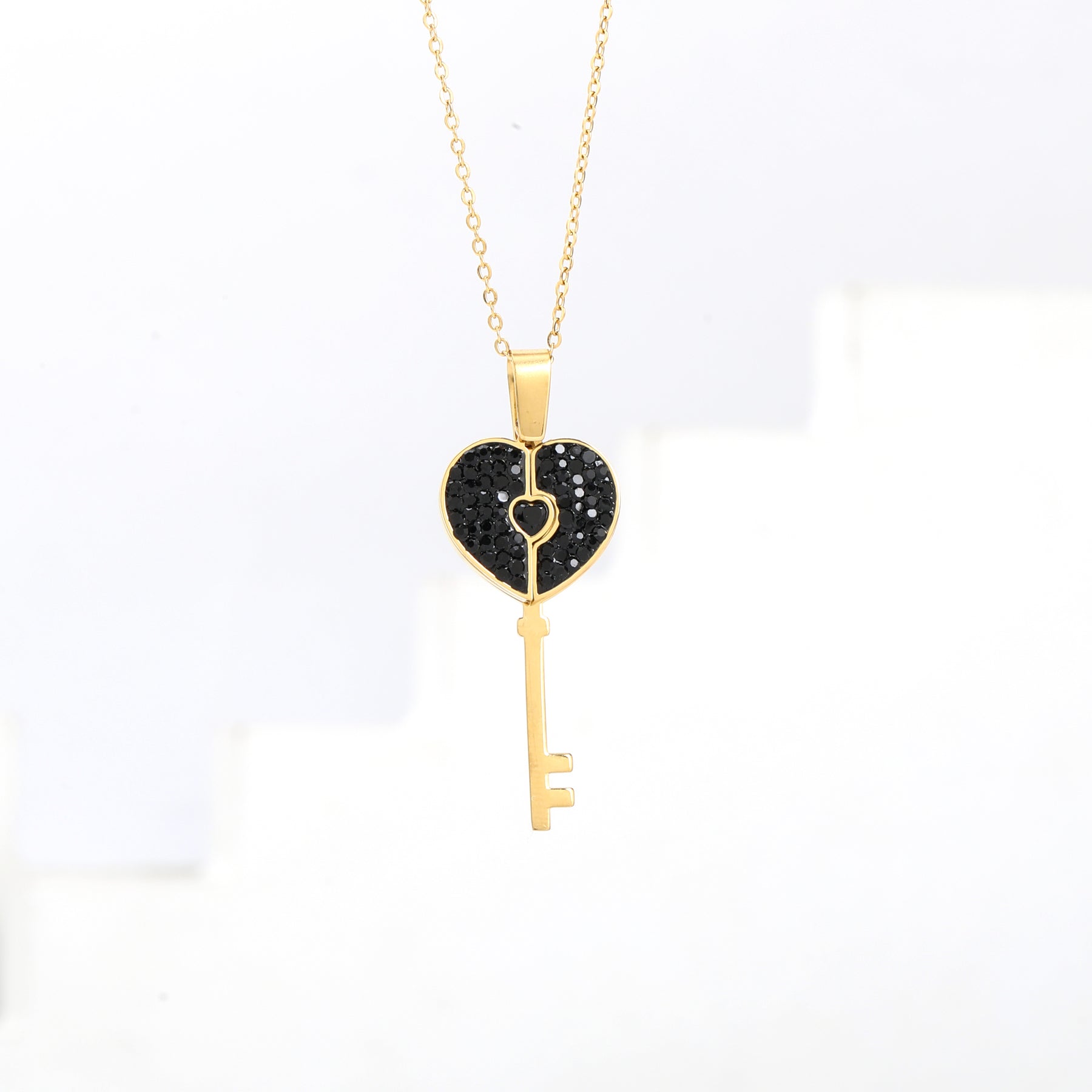 سنسال مطلي/معدن عالي الجودة – مفتاح قلب مزين بأحجار زركون سوداء