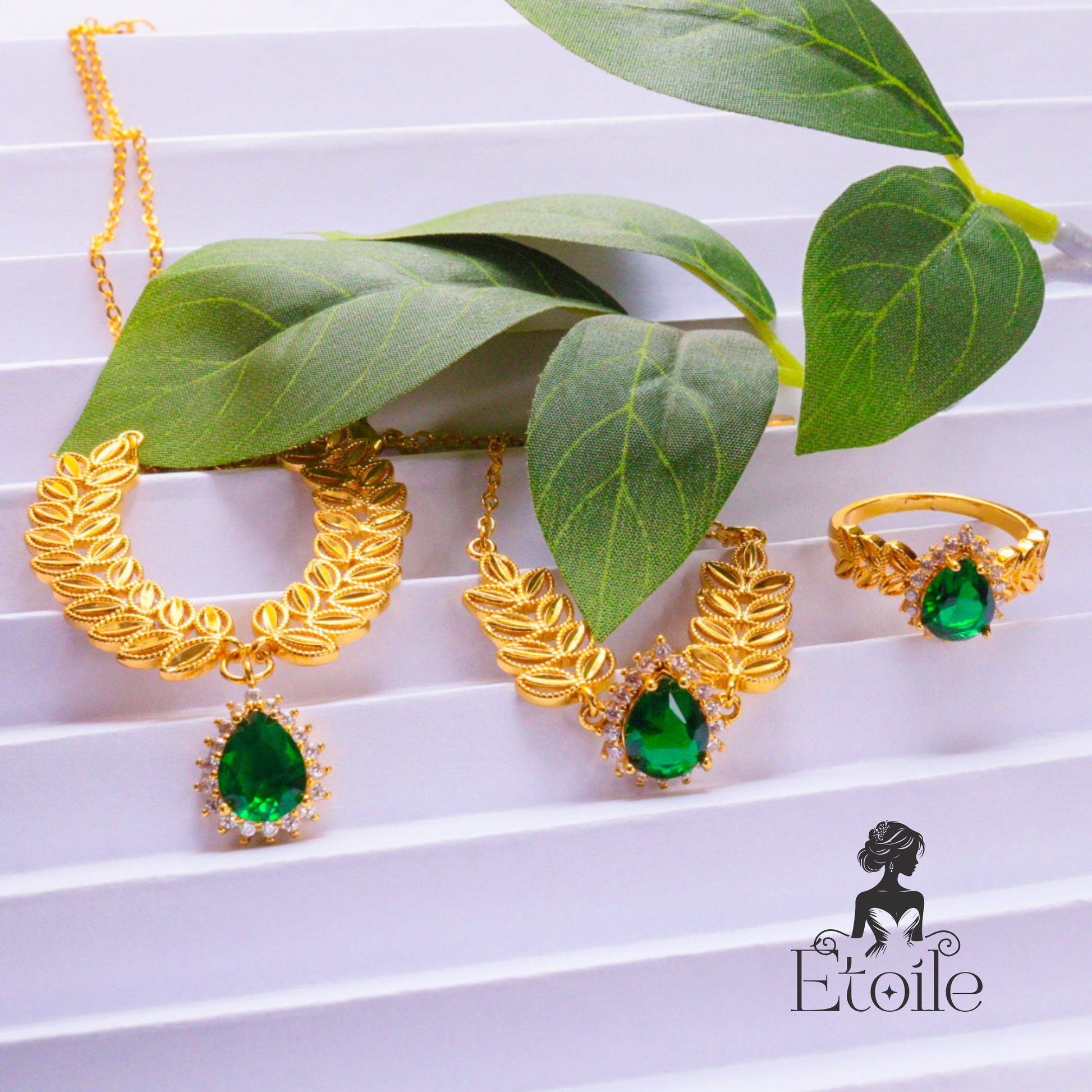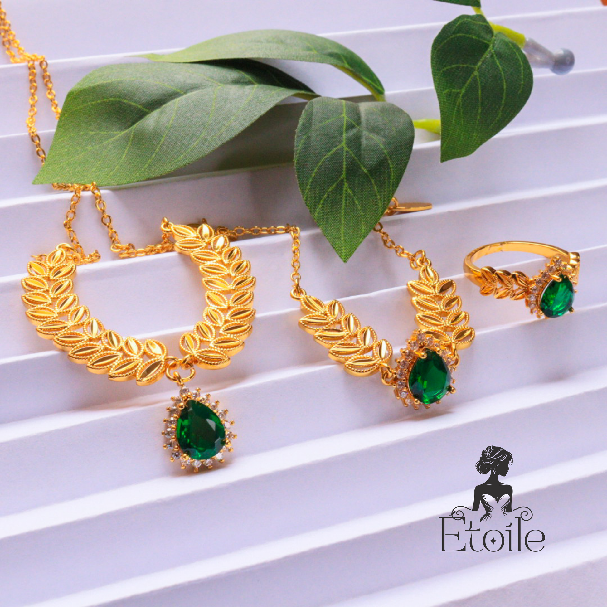 طقم سنبلة – تصميم فاخر مستوحى من أوراق الغار مع حجر زركوني متألق
