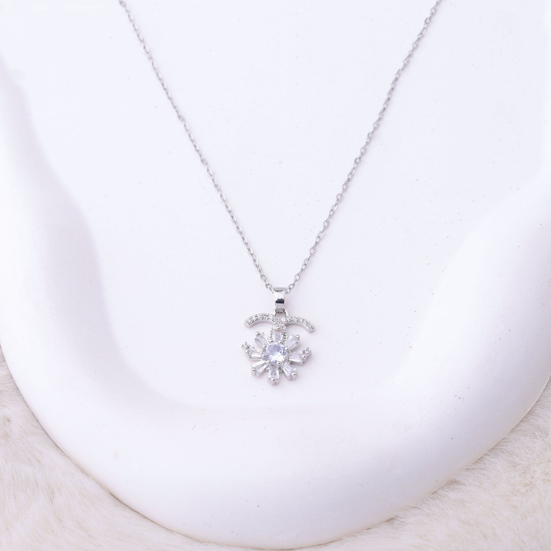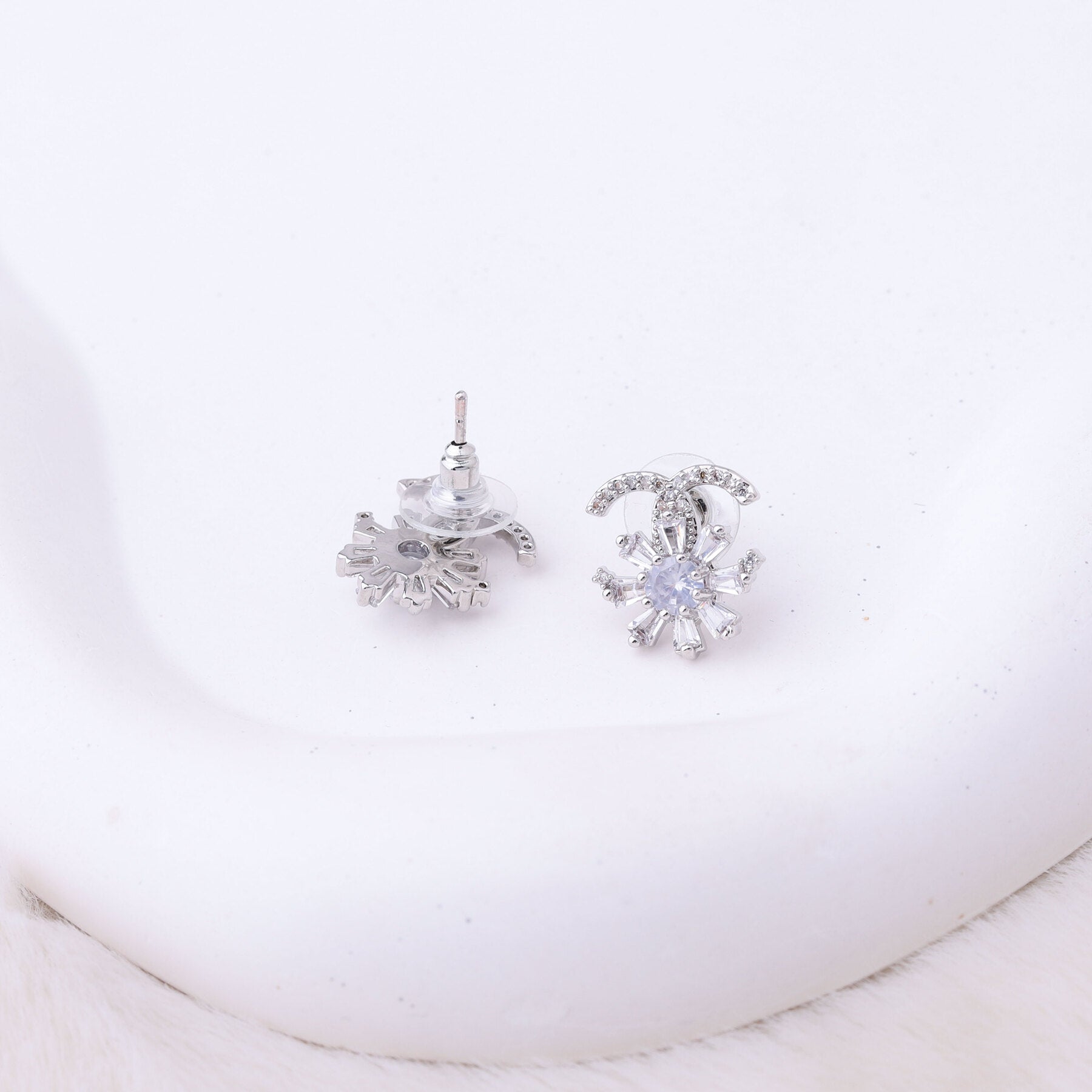 طقم شانيل – وردة قطعتين بزركون فضي 🌸💎