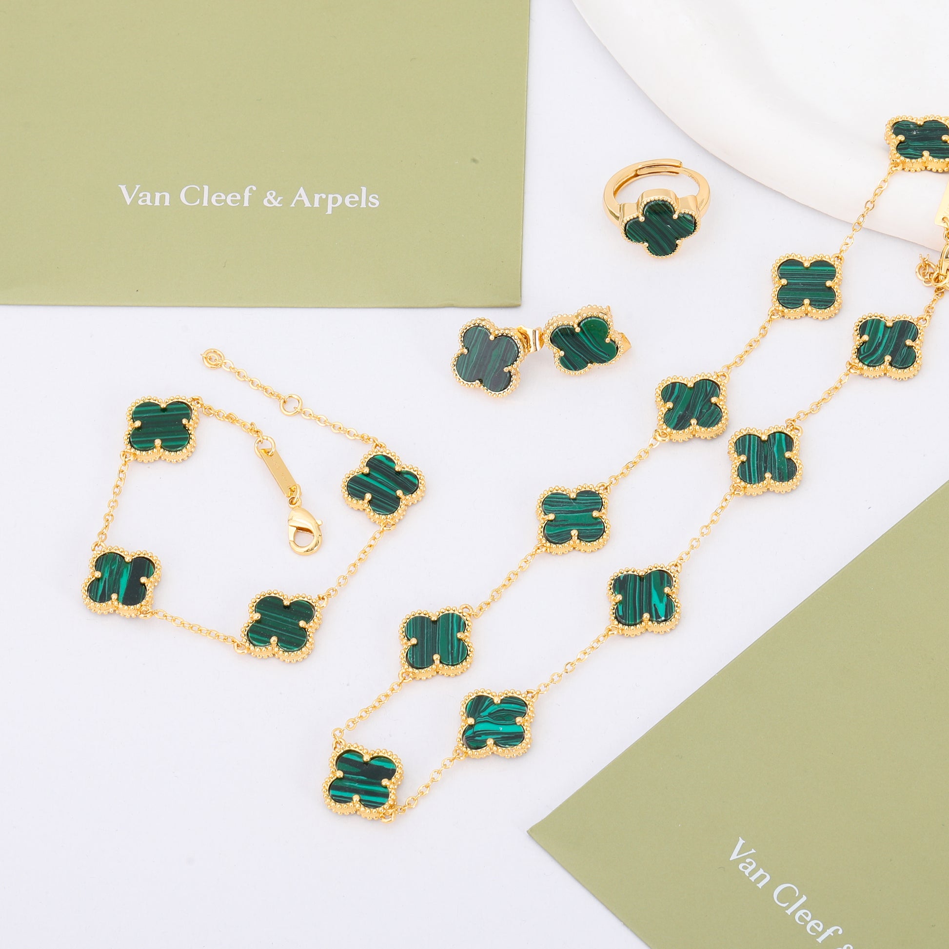 طقم فان كليف اخضر ذهبي 4 قطع