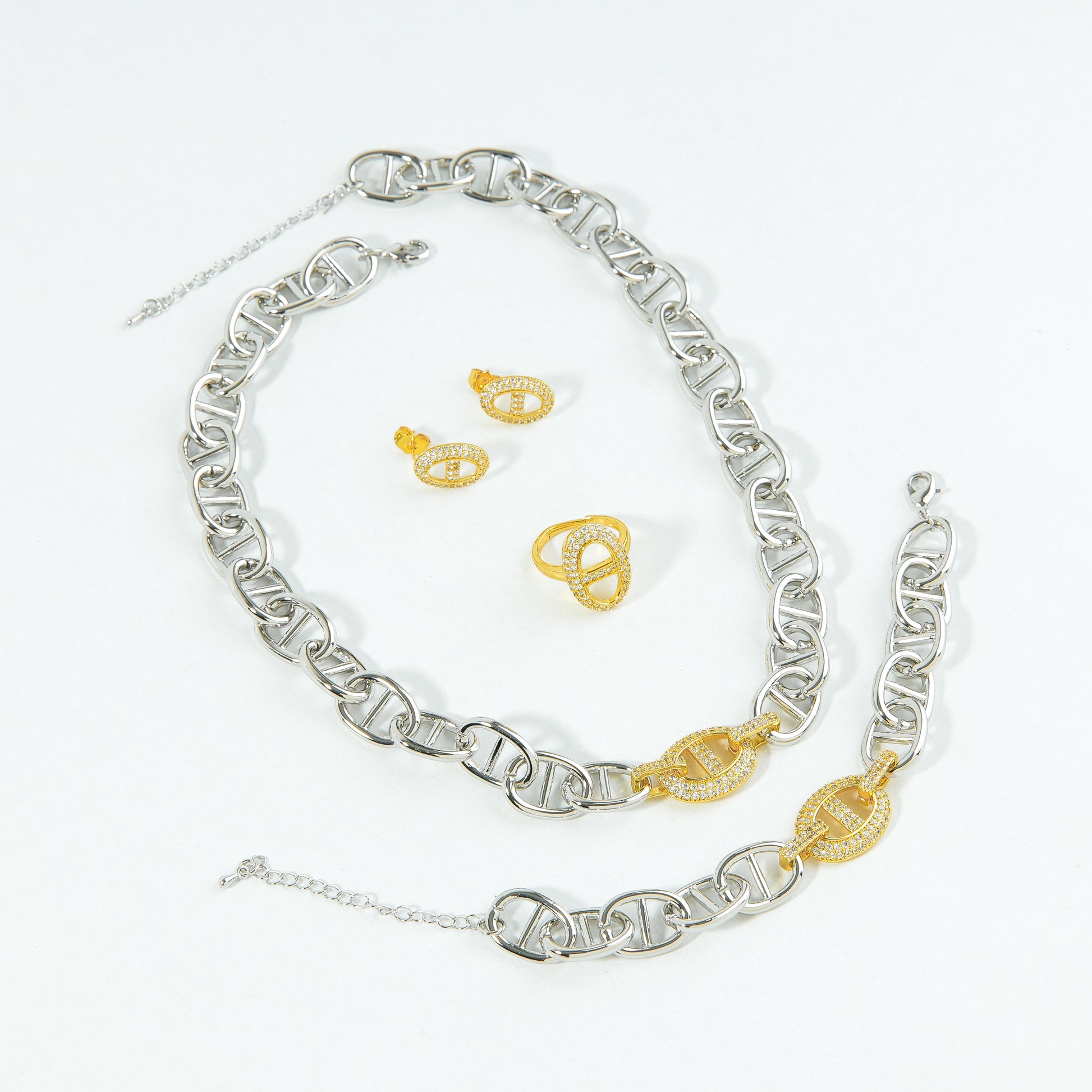 معدن فاخر مطلي بالفضة اللامعة ومرصّع بحجارة زركون أصلية عالية الجودة