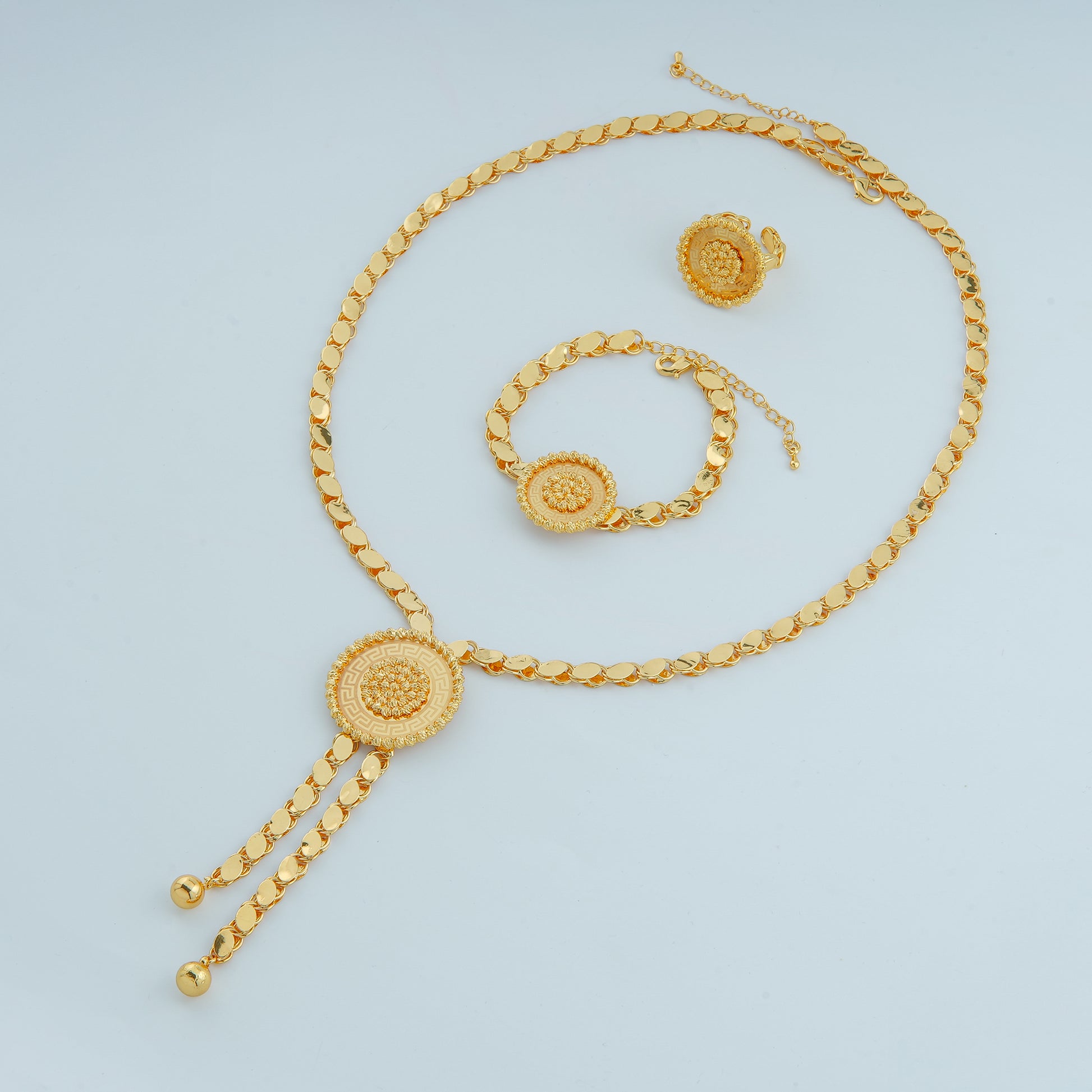الخامة: مصنوع من المعدن المصقول بعناية، مطلي بالذهب عالي الجودة أو ذهب صلب (دون تحديد عيار معين)، لضمان بريق ثابت ومبهر.