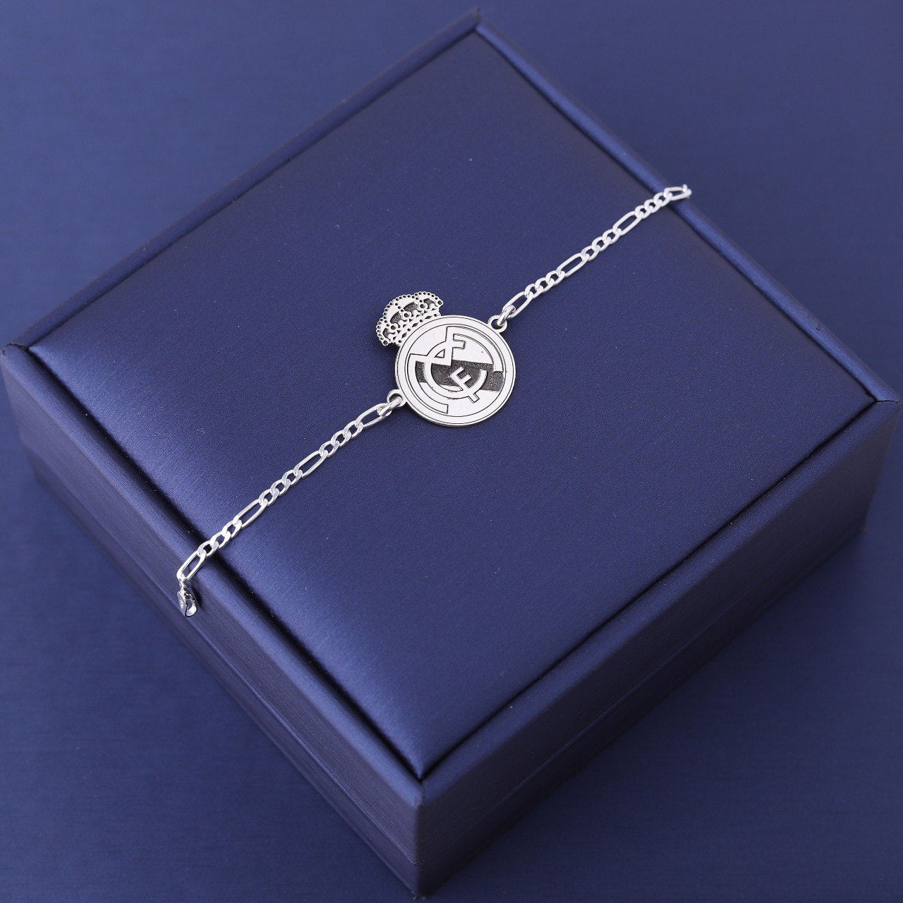 اسوارة فاخرة من الفضة الأصلية، بتصميم أنيق يحمل شعار ريال مدريد بتفاصيل دقيقة تعكس روح العراقة والانتماء.