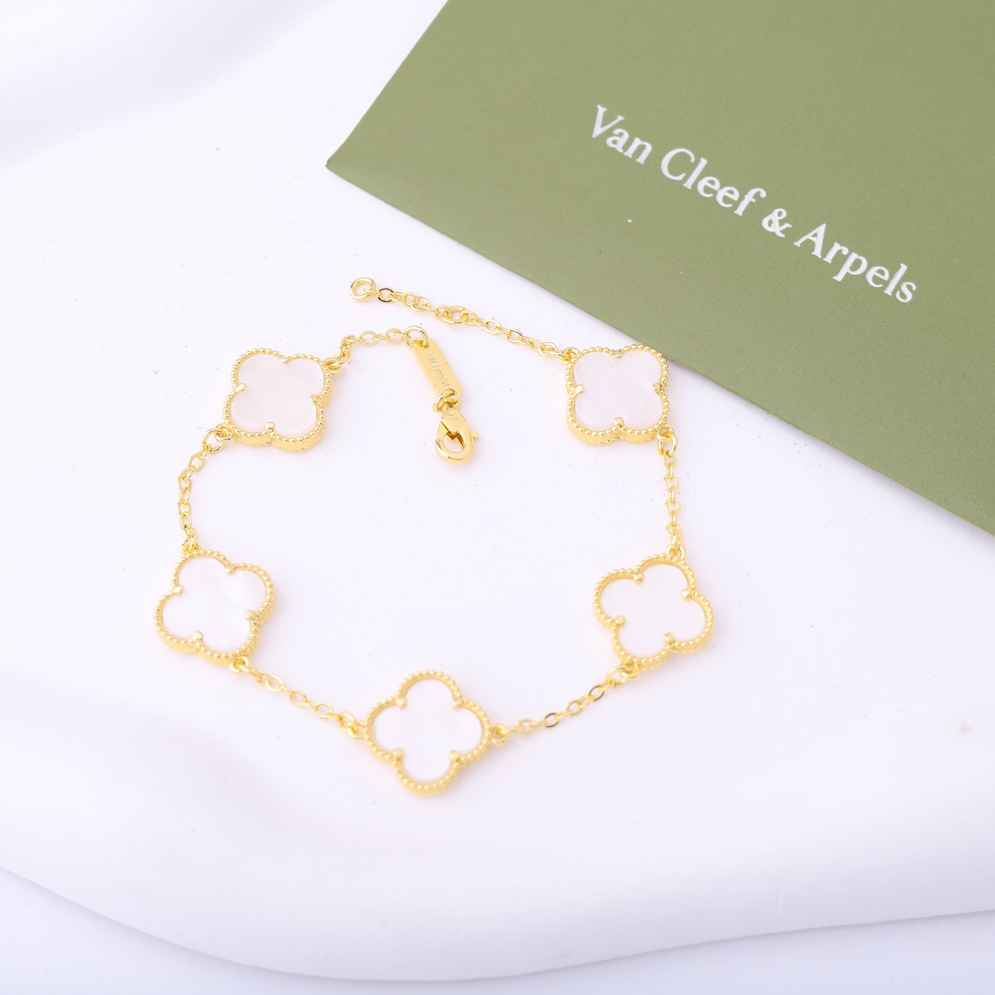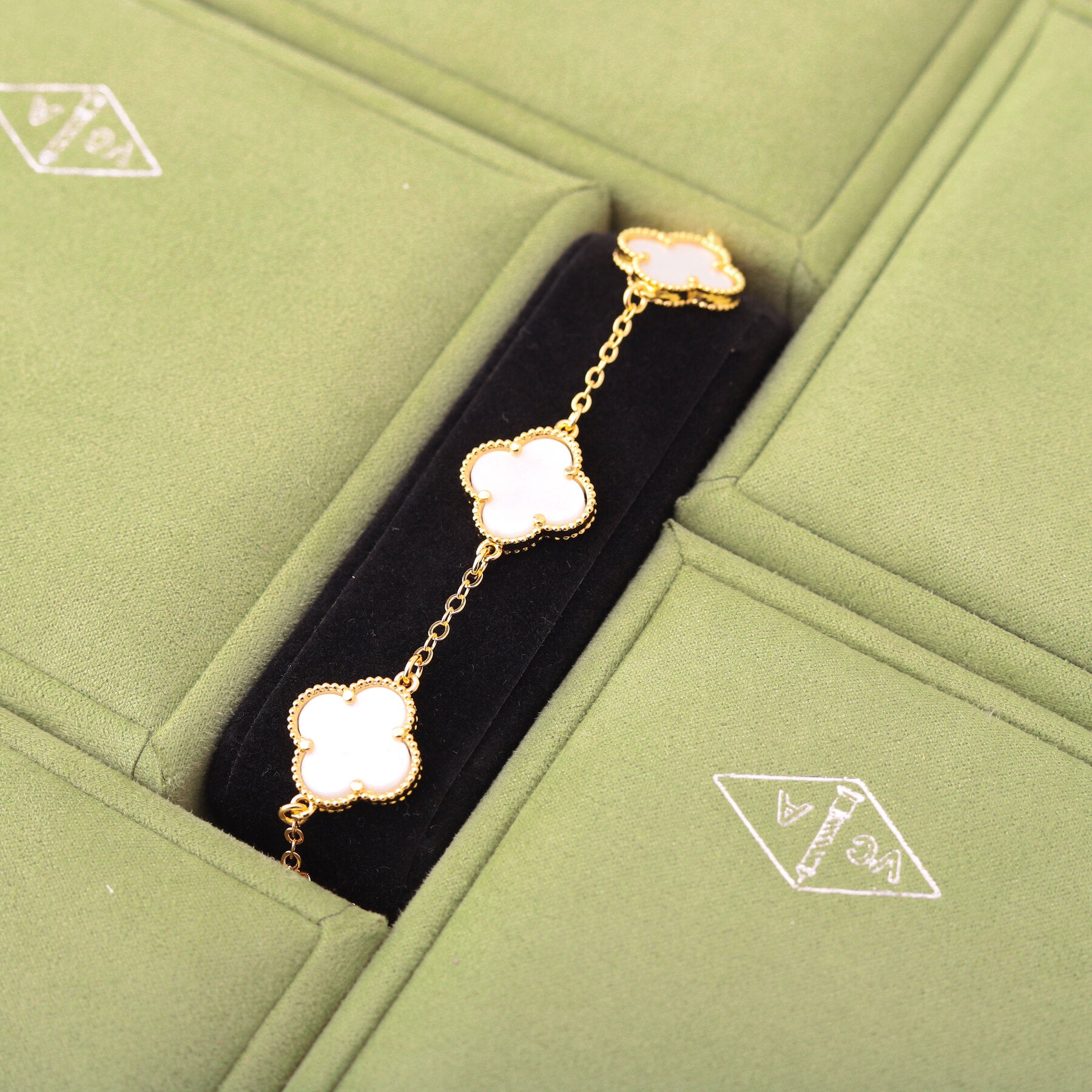 ✨ أسوارة فان كليف أبيض وذهبي - (مُختم) ✨