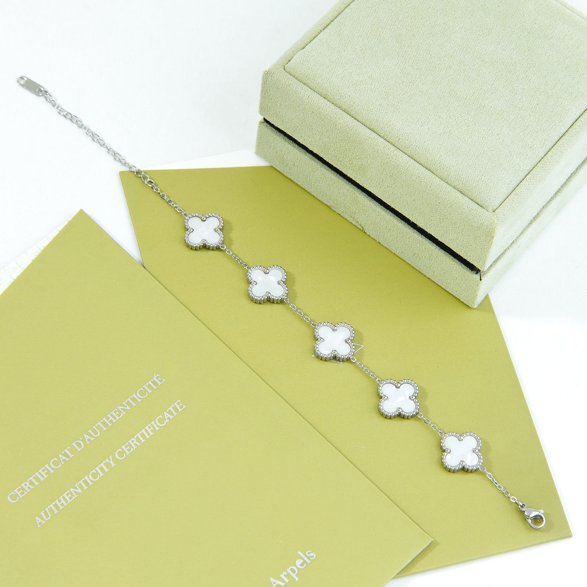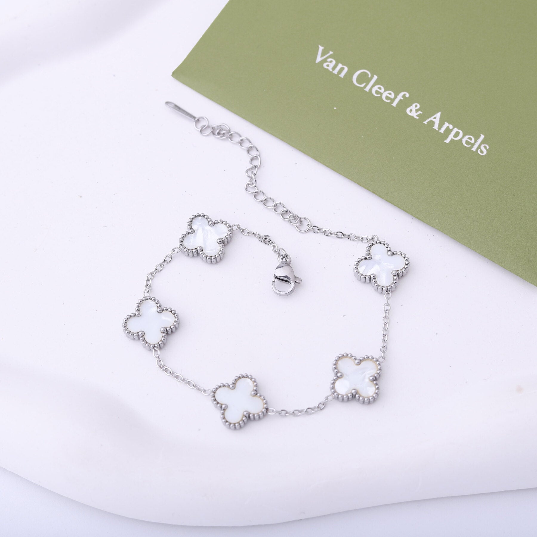 🌷 أسوارة فان كليف أبيض وفضي ستيل