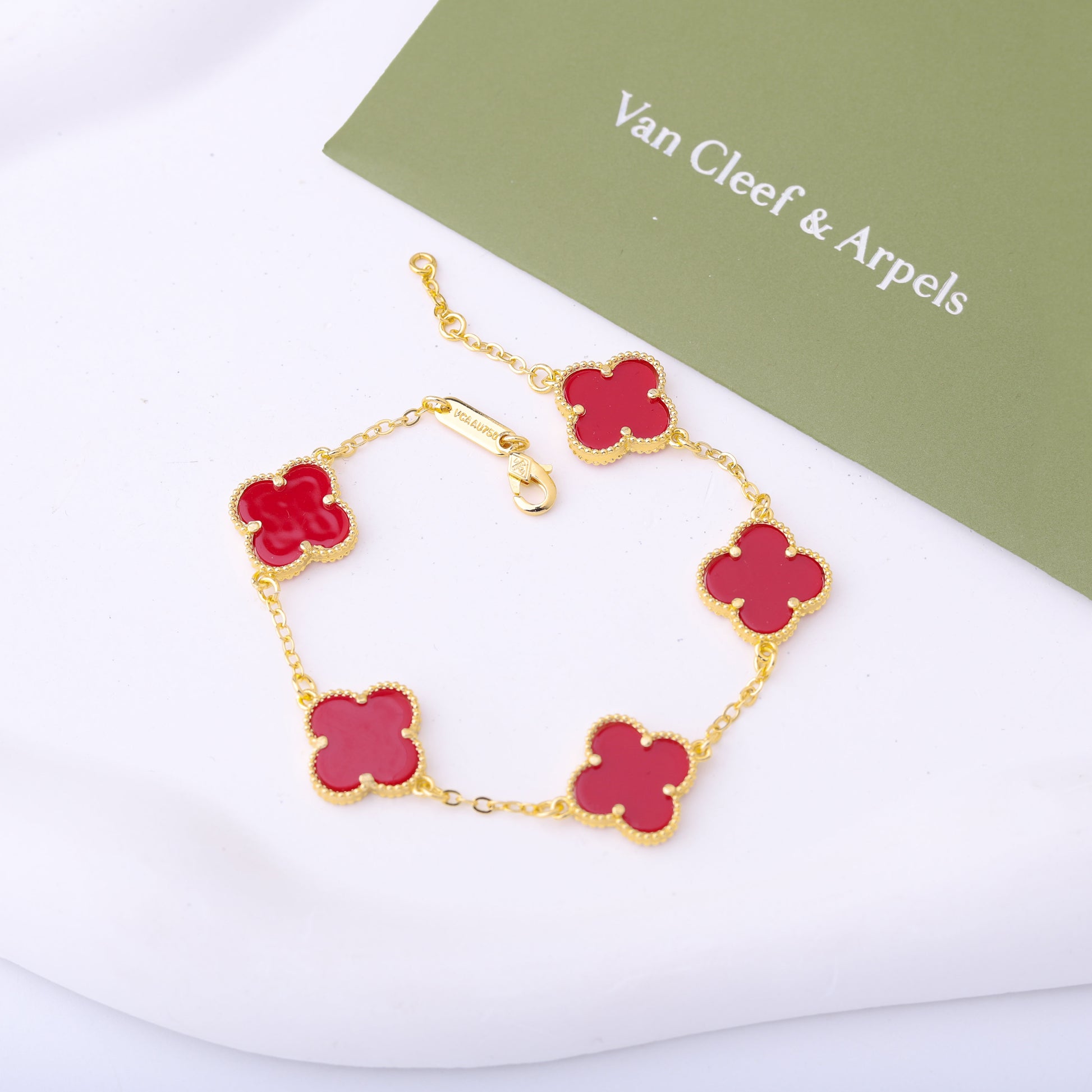 ✨ أسوارة فان كليف أحمر وذهبي - (مُختم) ✨