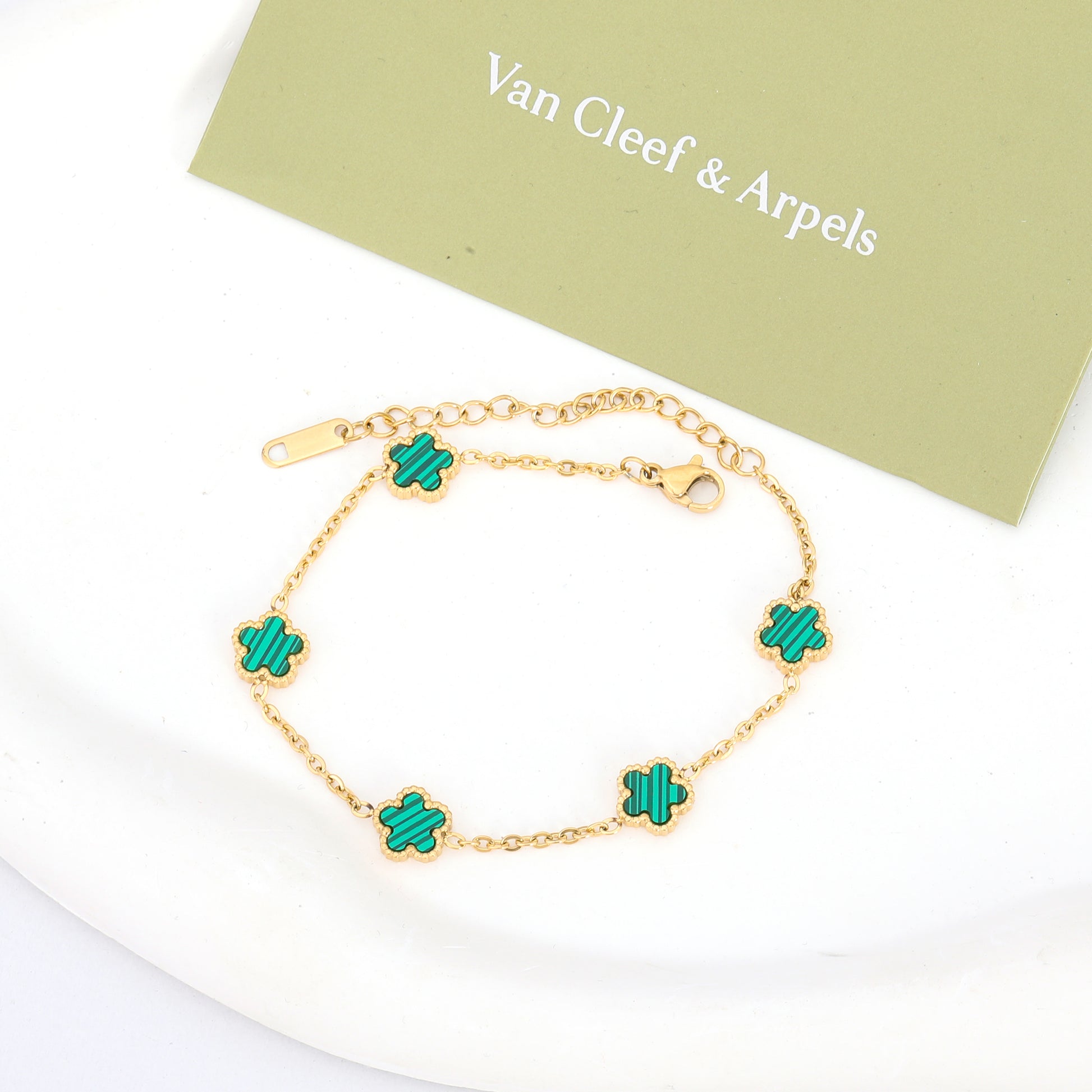✨ أسوارة فان كليف ذهبي وأخضر - ورد ✨