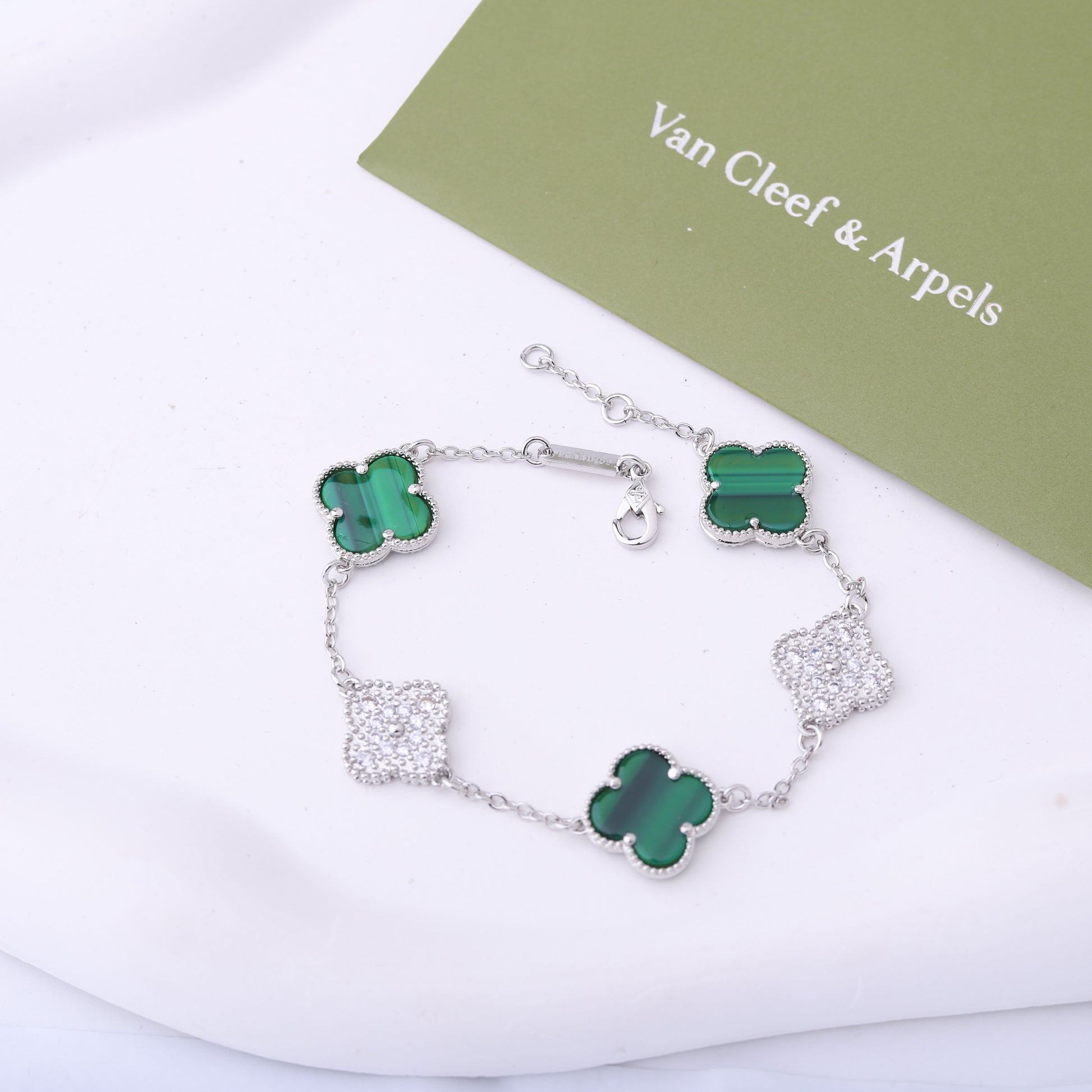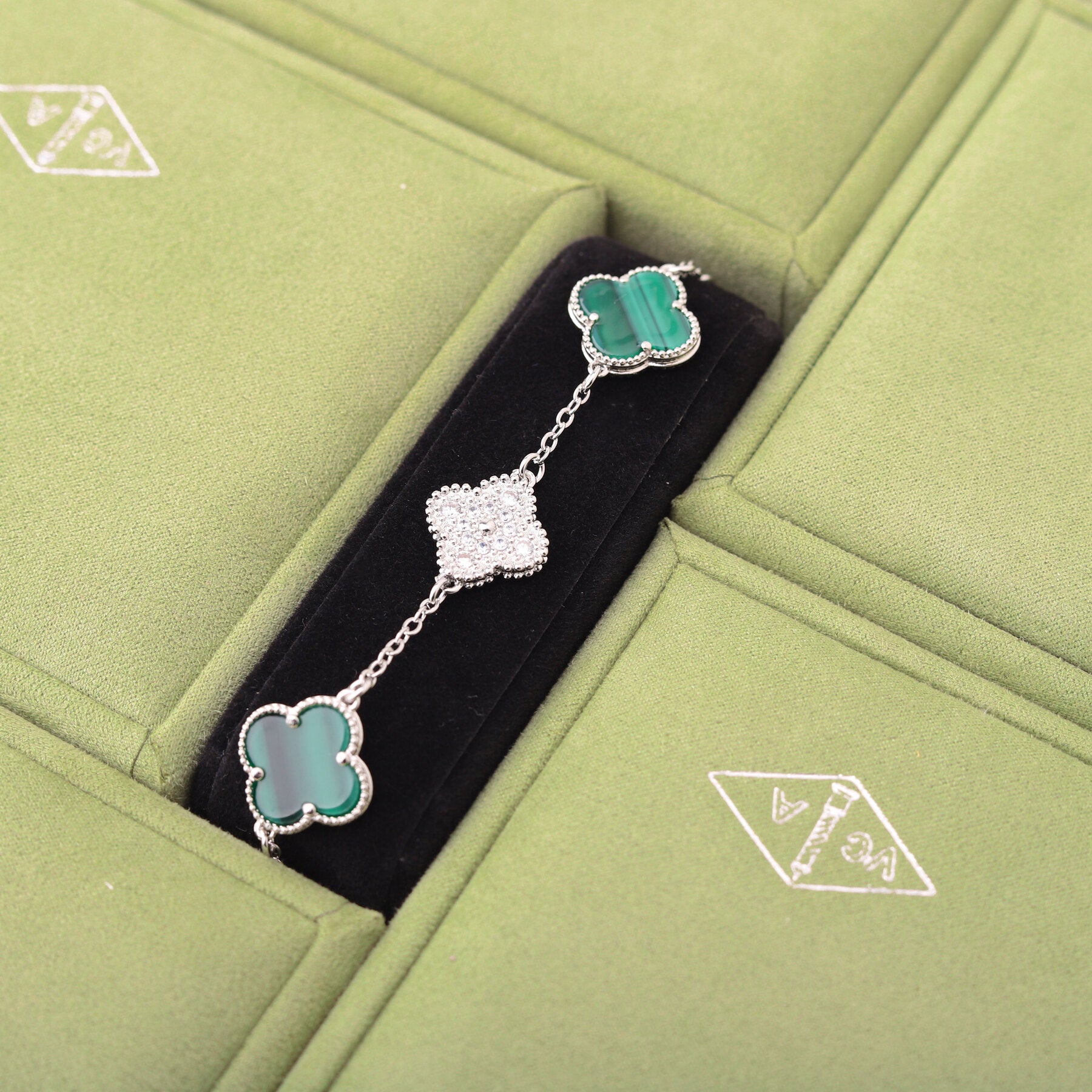 ✨ أسوارة فان كليف زركون فضي وأخضر - (مُختم) ✨