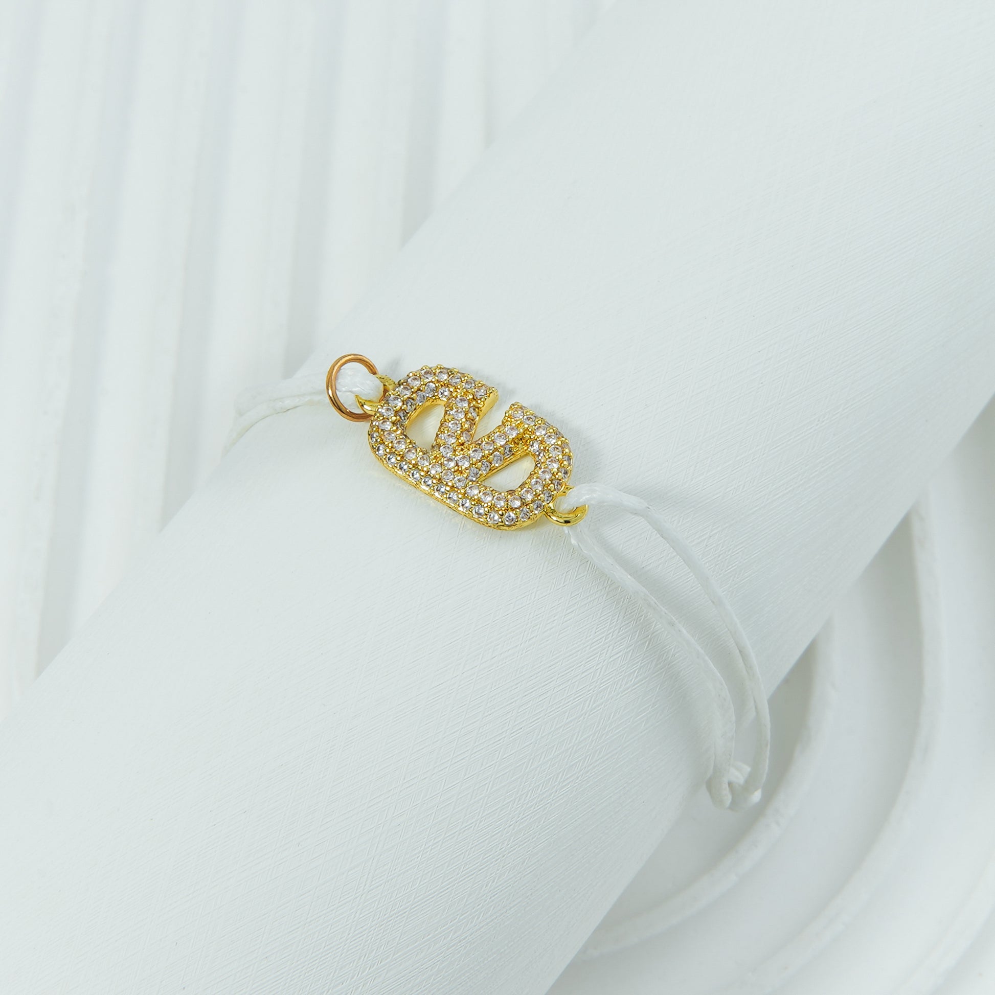 💎✨ اسوارة خيط Valentino أبيض رفيع – أناقة متألقة ولمسة فخامة رقيقة.