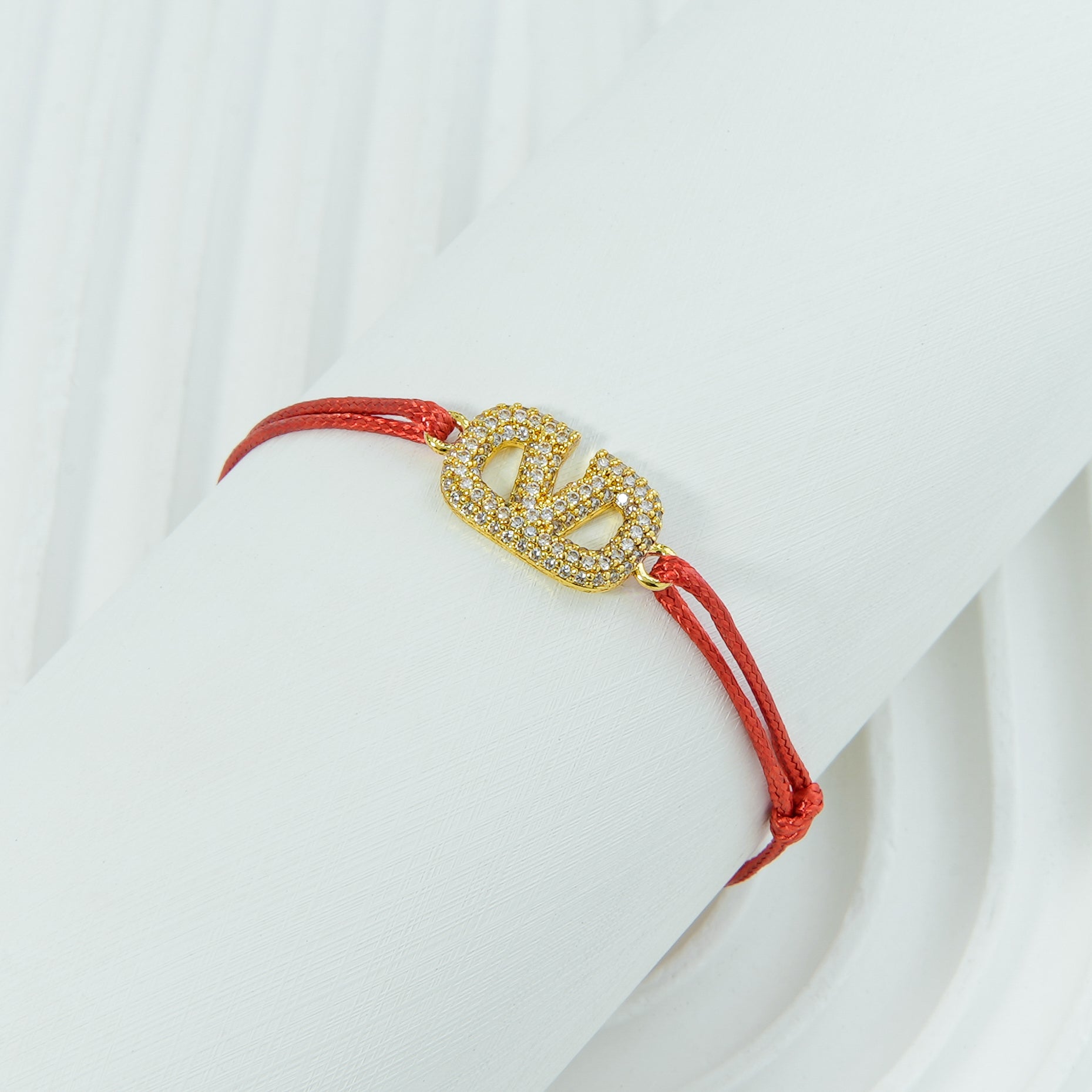💎✨ اسوارة خيط Valentino أحمر رفيع – أناقة متألقة ولمسة فخامة حيوية.