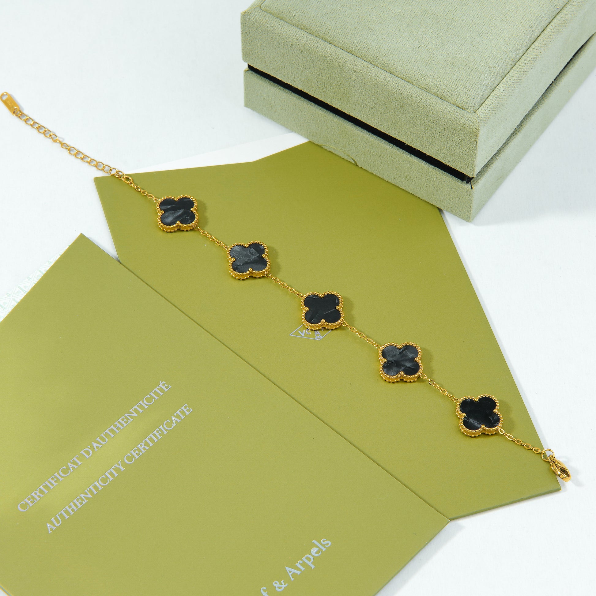 🌷 اسوارة فان كليف أسود مموج ستيل - حيث يرقص ظل الليل على معصمك بأناقة لا تنتهي.