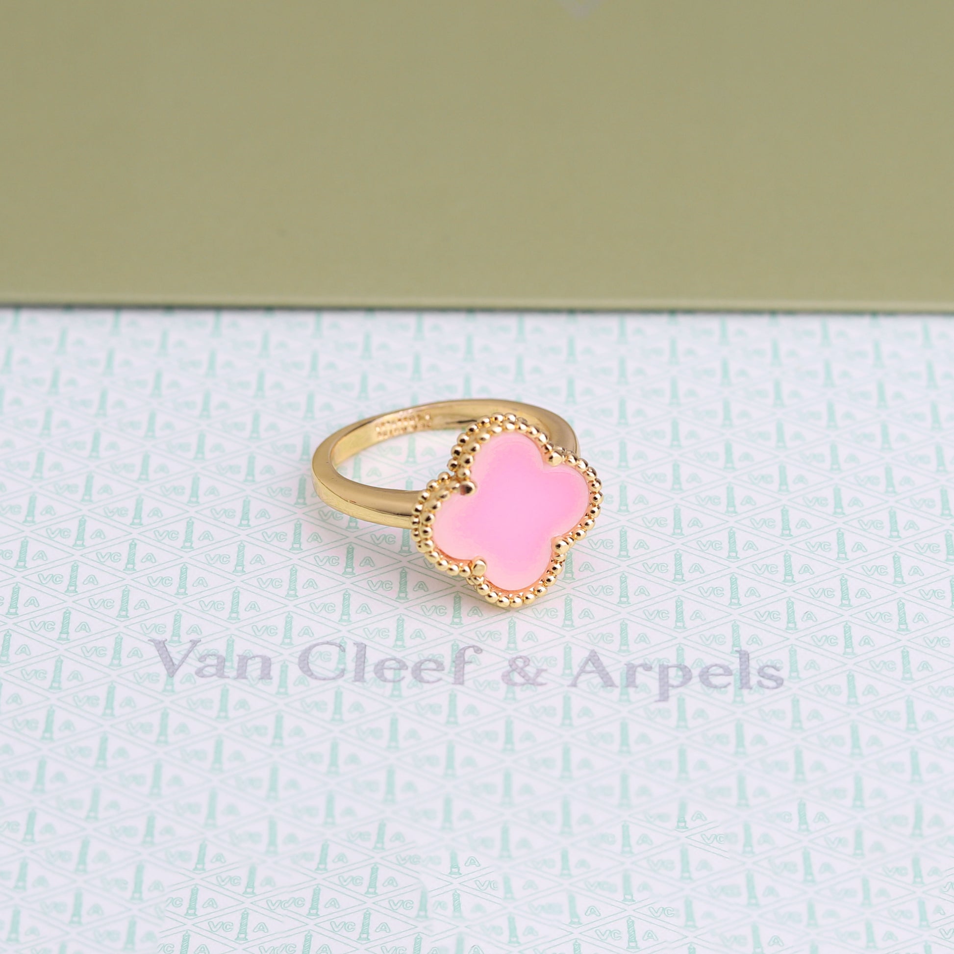 خاتم فان كليف الزهري يُجسّد الأنوثة والرقة في تصميم فاخر، حيث يلتقي لون الزهور مع بريق الذهب ليُضفي على إصبعكِ لمسة ساحرة.