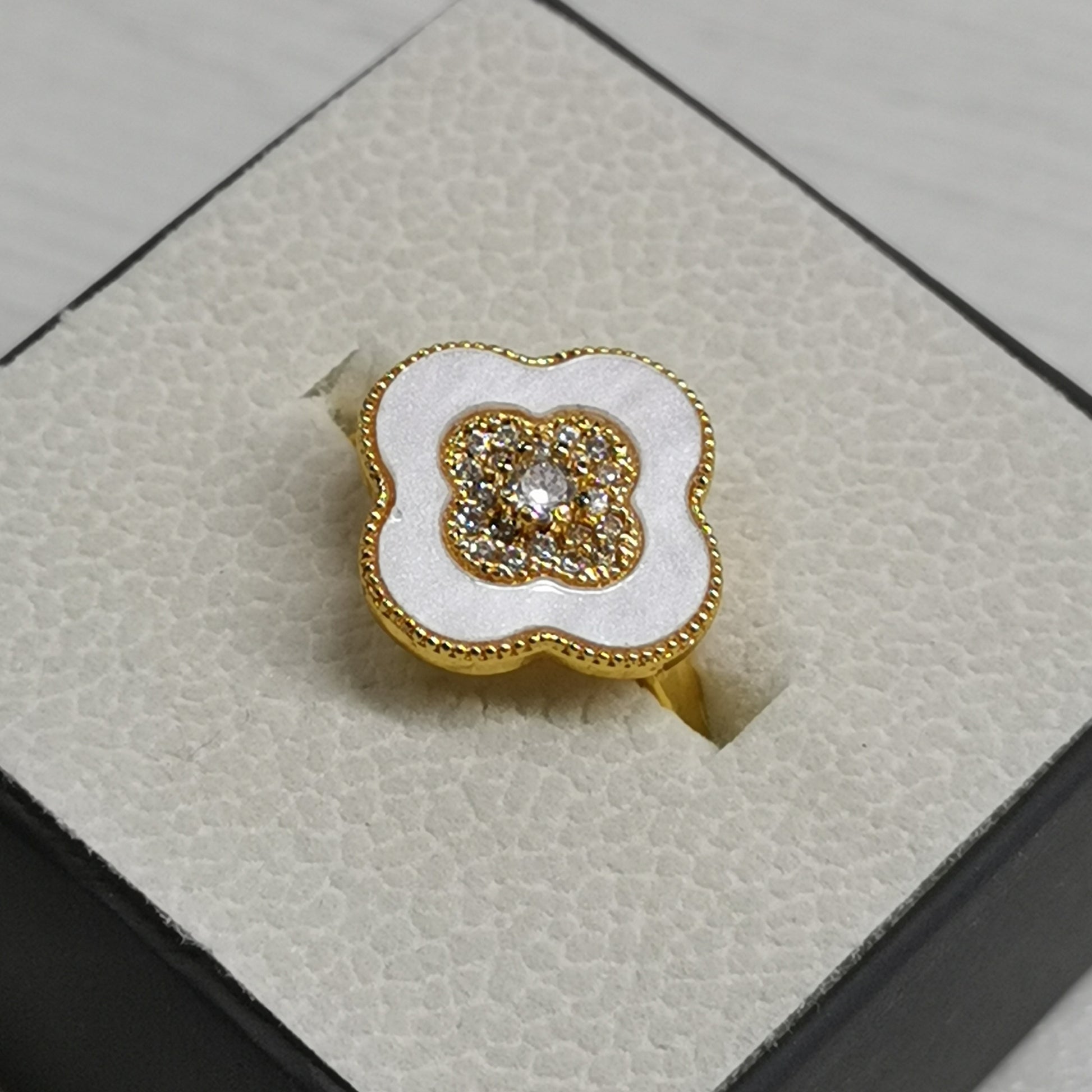 خاتم وردة فان كليف الأبيض يُجسّد الأناقة النقية في تصميم يخطف الأنظار، حيث يلتقي بياض الثلج مع بريق التصميم ليُضفي على إصبعكِ لمسة من السحر والجمال.
