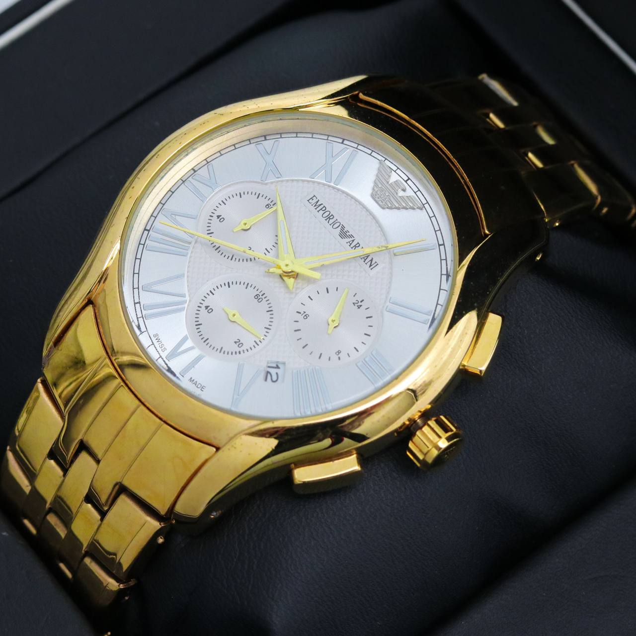 ساعة أرمني بإطار ذهبي لامع وثلاث عقارب دقيقة تمنحك دقة عالية وأناقة لا مثيل لها في كل مناسبة ✨