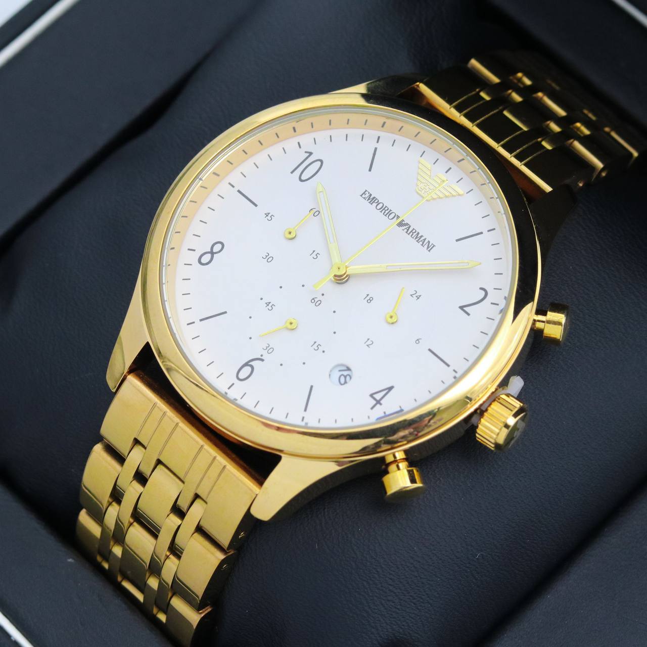 ساعة أرمني بإطار ذهبي لامع وثلاث عقارب دقيقة تمنحك مزيجًا مثاليًا من الأناقة والعملية في كل مناسبة ✨