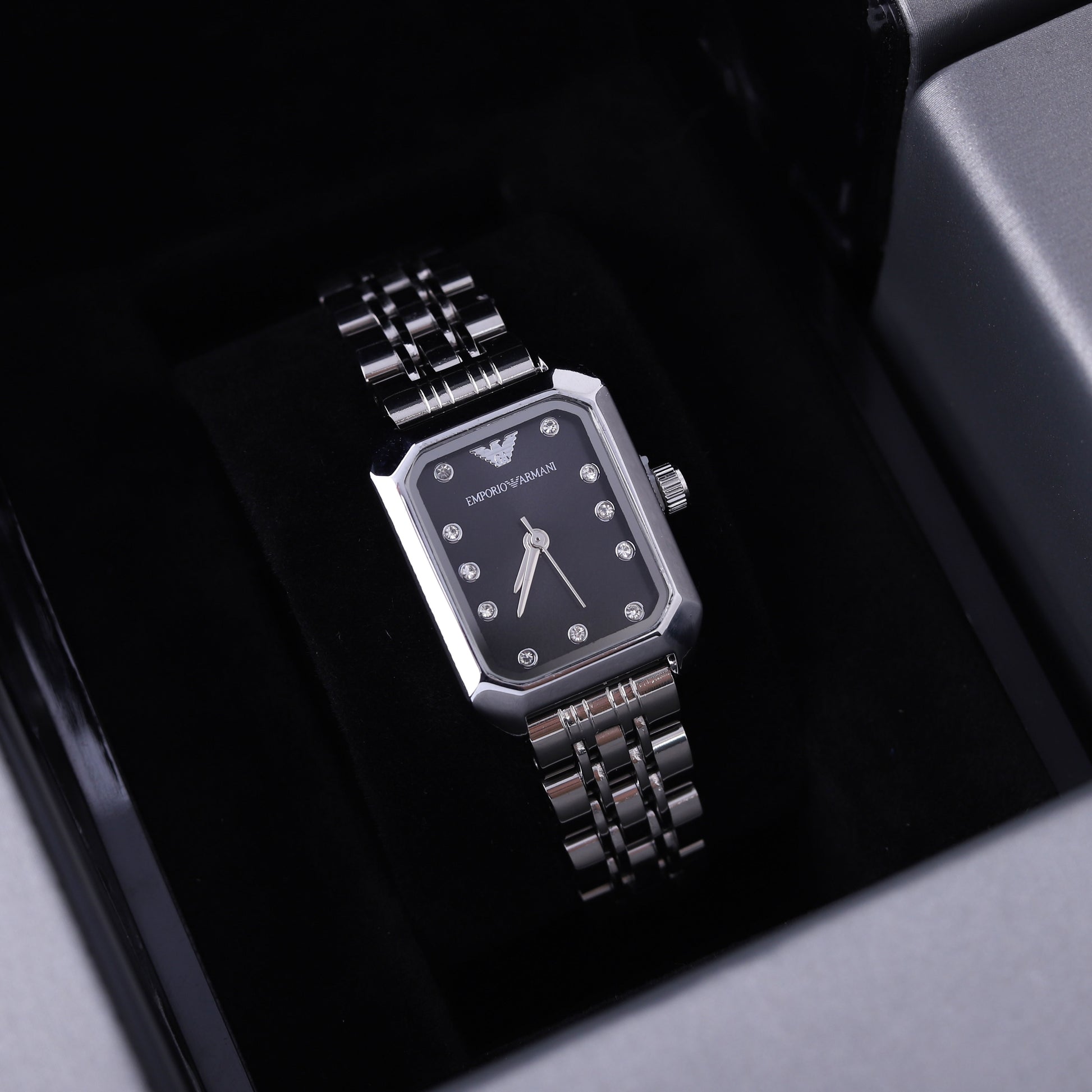 ساعة أرمني الفضيّة تأتي بتفاصيل راقية ومينا أسود أنيق يبرز شخصيتك القوية وأسلوبك العصري في كل مناسبة ⌚💫