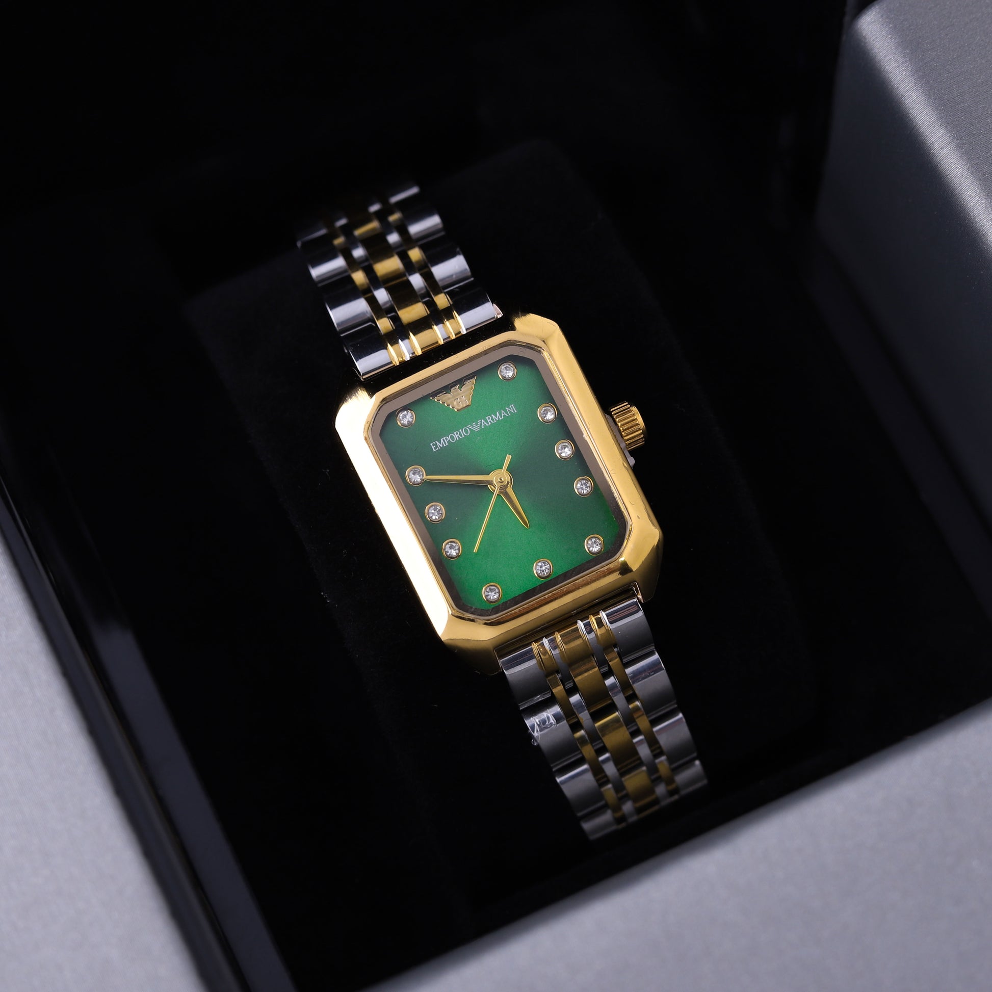 ⌚💚💛 ساعة أرمني – مكس ذهبي وأخضر فاخر … فخامة تُحاكي الطبيعة، وأناقة لا تزول ✨