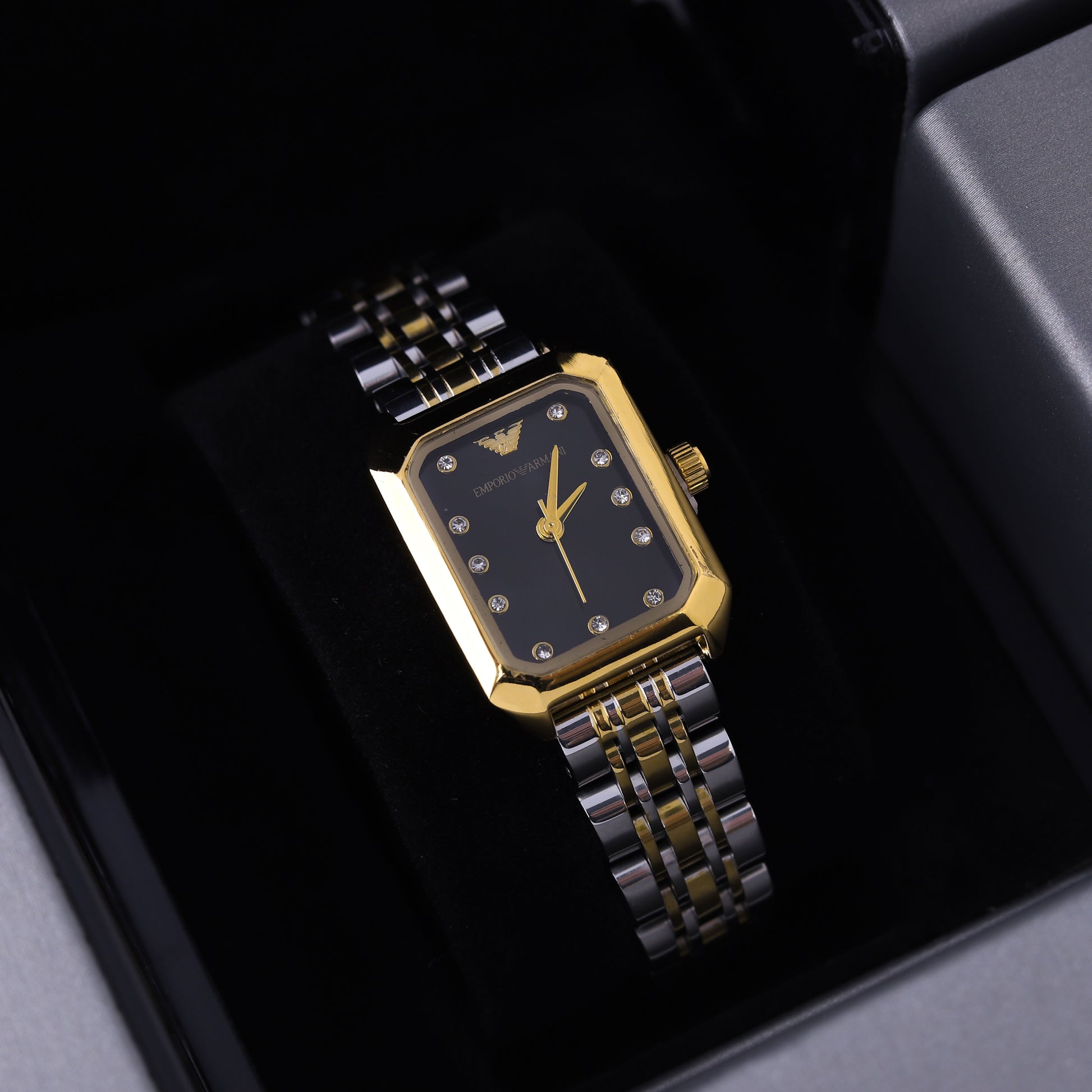 ⌚💛🖤 ساعة أرمني – مكس ذهبي وأسود فاخر … فخامة القوة وأناقة التفاصيل في كل لحظة. ✨