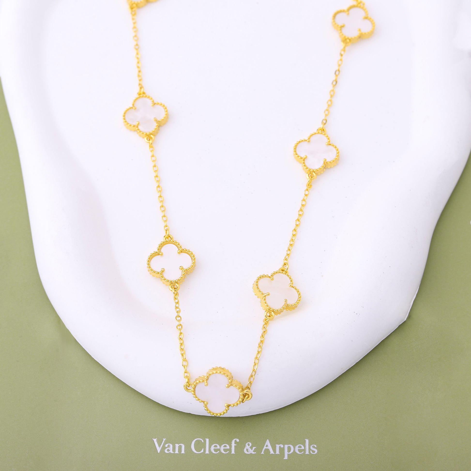 ✨ سنسال فان كليف طويل أبيض وذهبي - 10 وردات ✨