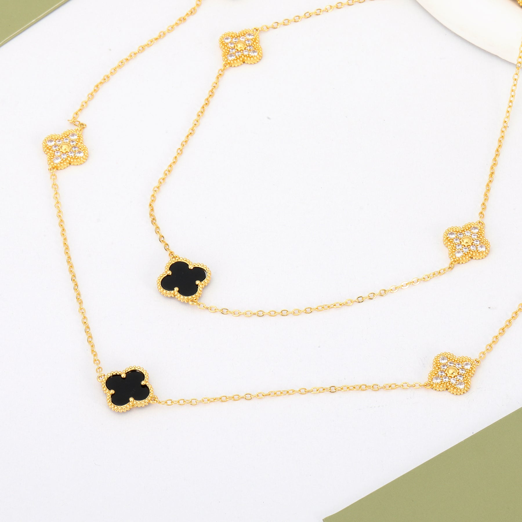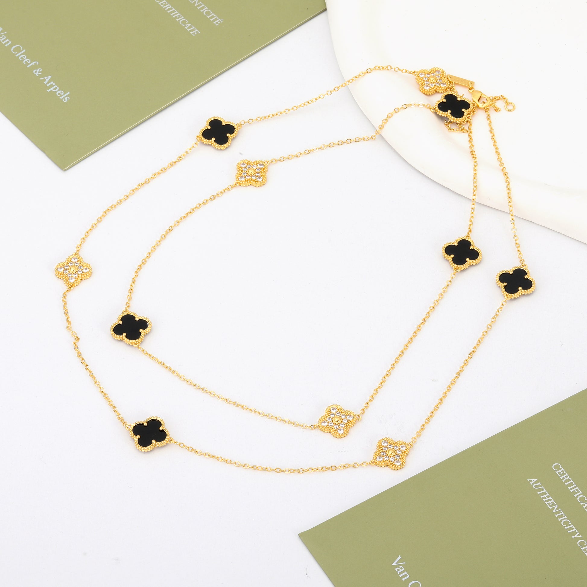 ⚫ التصميم: سلسلة طويلة بنصف زركون بتصميم فان كليف الأيقوني