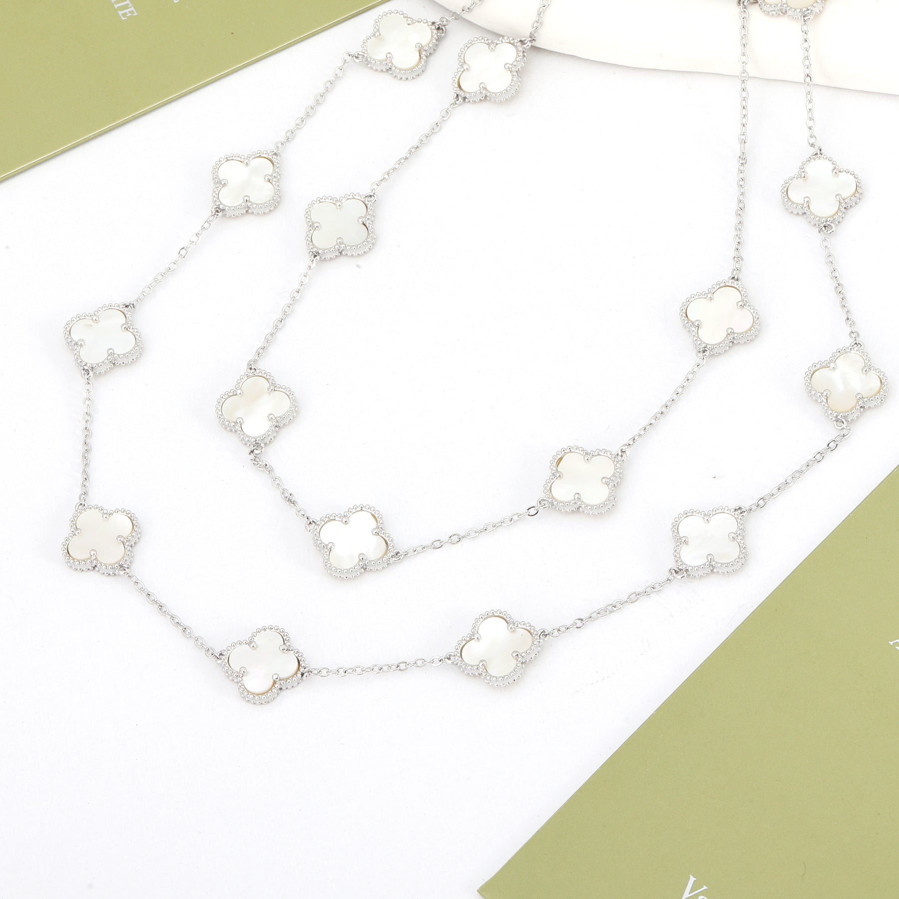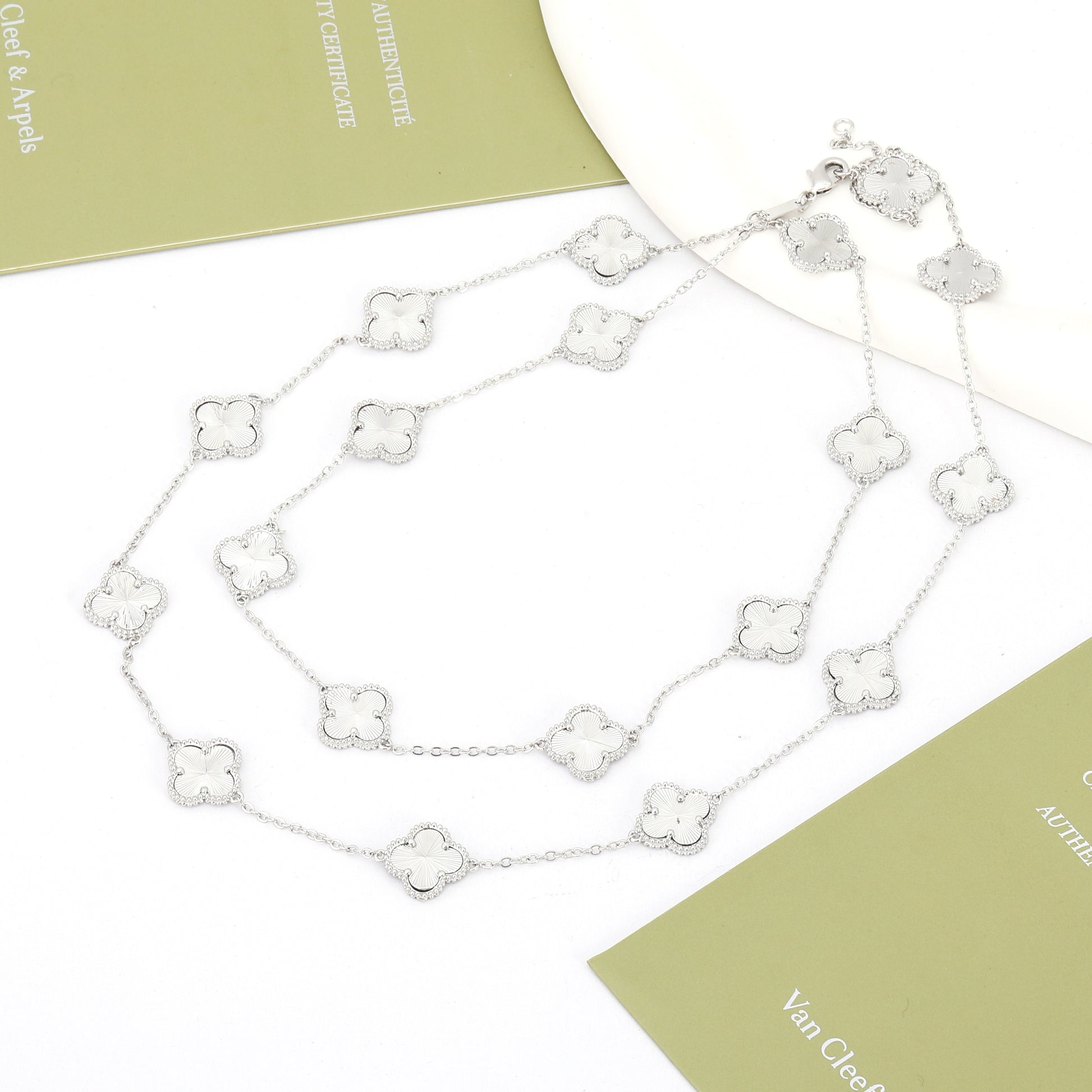 سنسال فان كليف الفضي بتصميم الـ19 وردة يُجسّد الأناقة العصرية في أرقى صورها. قطعَة ساحرة تمنحكِ بريقاً هادئاً يناسب جميع إطلالاتك.