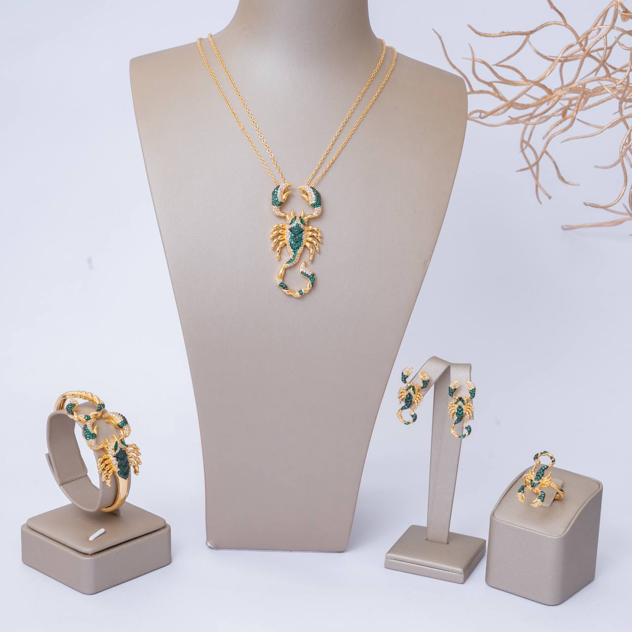 طقم العقرب سكجها باللون الأخضر، يتكون من قطع متناسقة تمنحك إطلالة راقية ومميزة في جميع المناسبات.