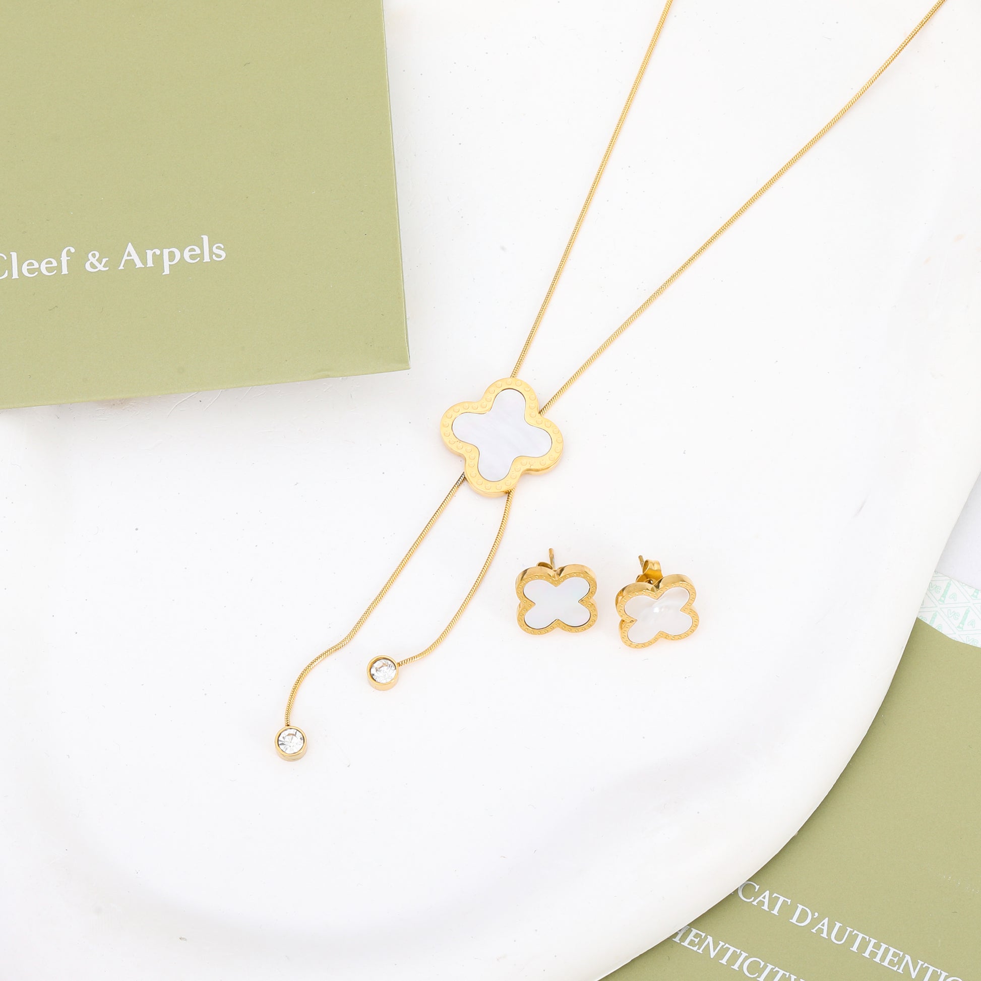 ✨ طقم فان كليف أبيض زركون ناعم - سنسال وحلق ✨