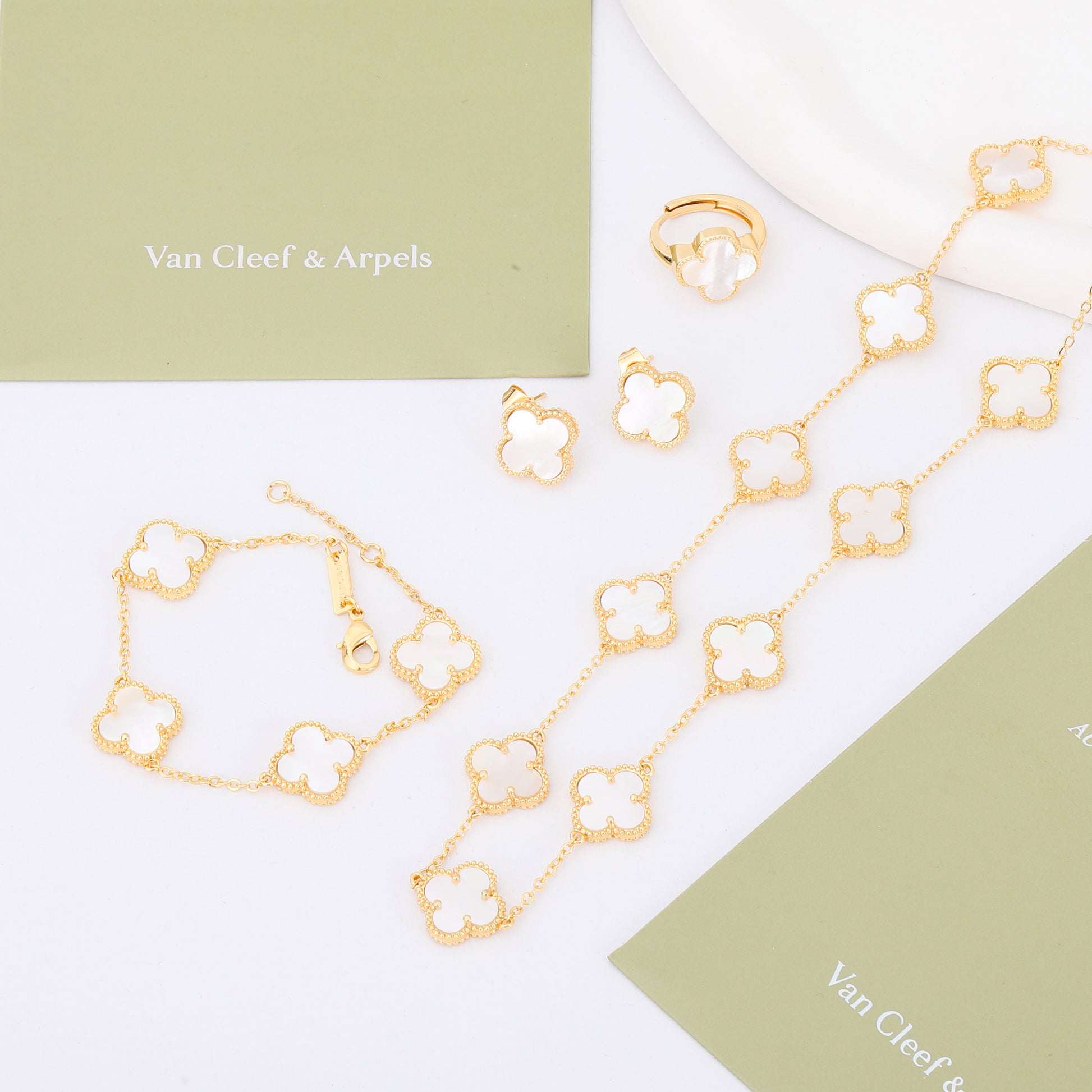 🌷 طقم فان كليف أبيض وذهبي - 4 قطع