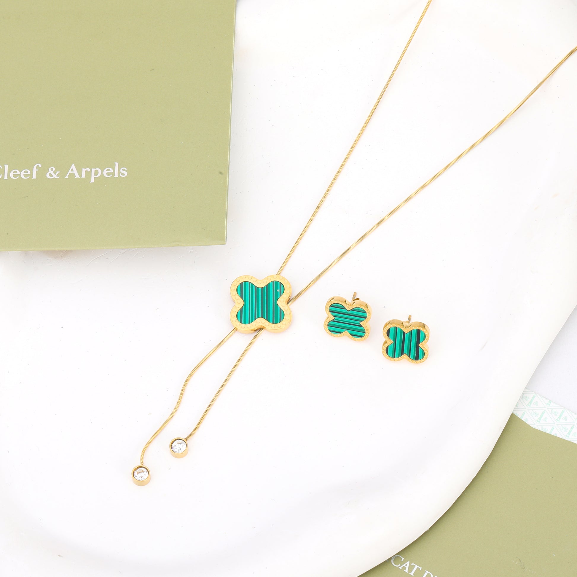 ✨ طقم فان كليف أخضر زركون ناعم - سنسال وحلق ✨