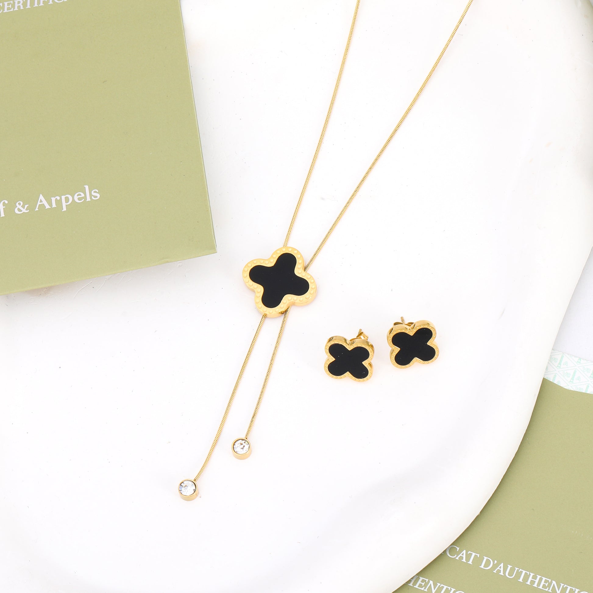 ✨ طقم فان كليف أسود زركون ناعم - سنسال وحلق ✨