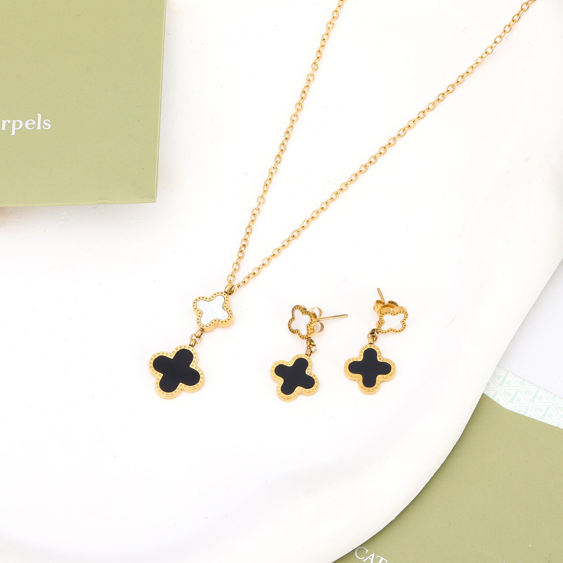 ✨ طقم فان كليف أسود وأبيض - وردتين ✨