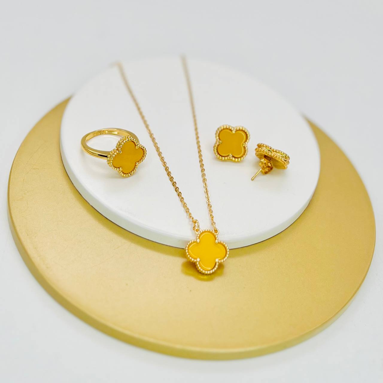 طقم فان كليف الأصفر يمنحكِ إشراقة الشمس في كل لحظة، بتصميمين متناغمين ينثران البهجة والأناقة.