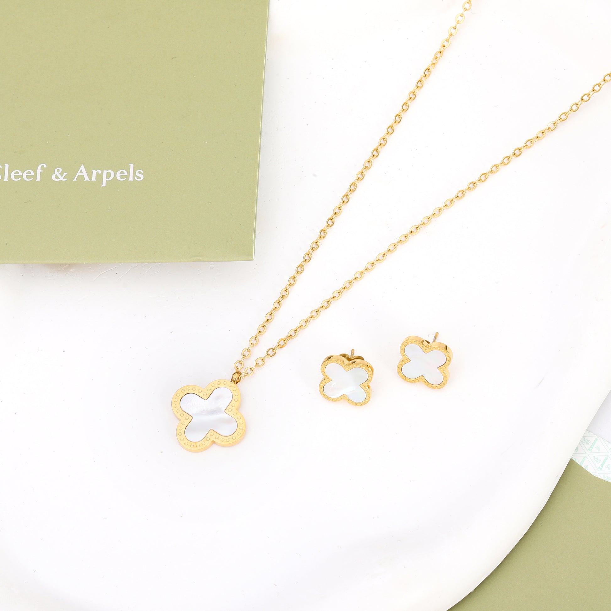 ✨ طقم فان كليف ذهبي ناعم - سنسال وحلق ✨