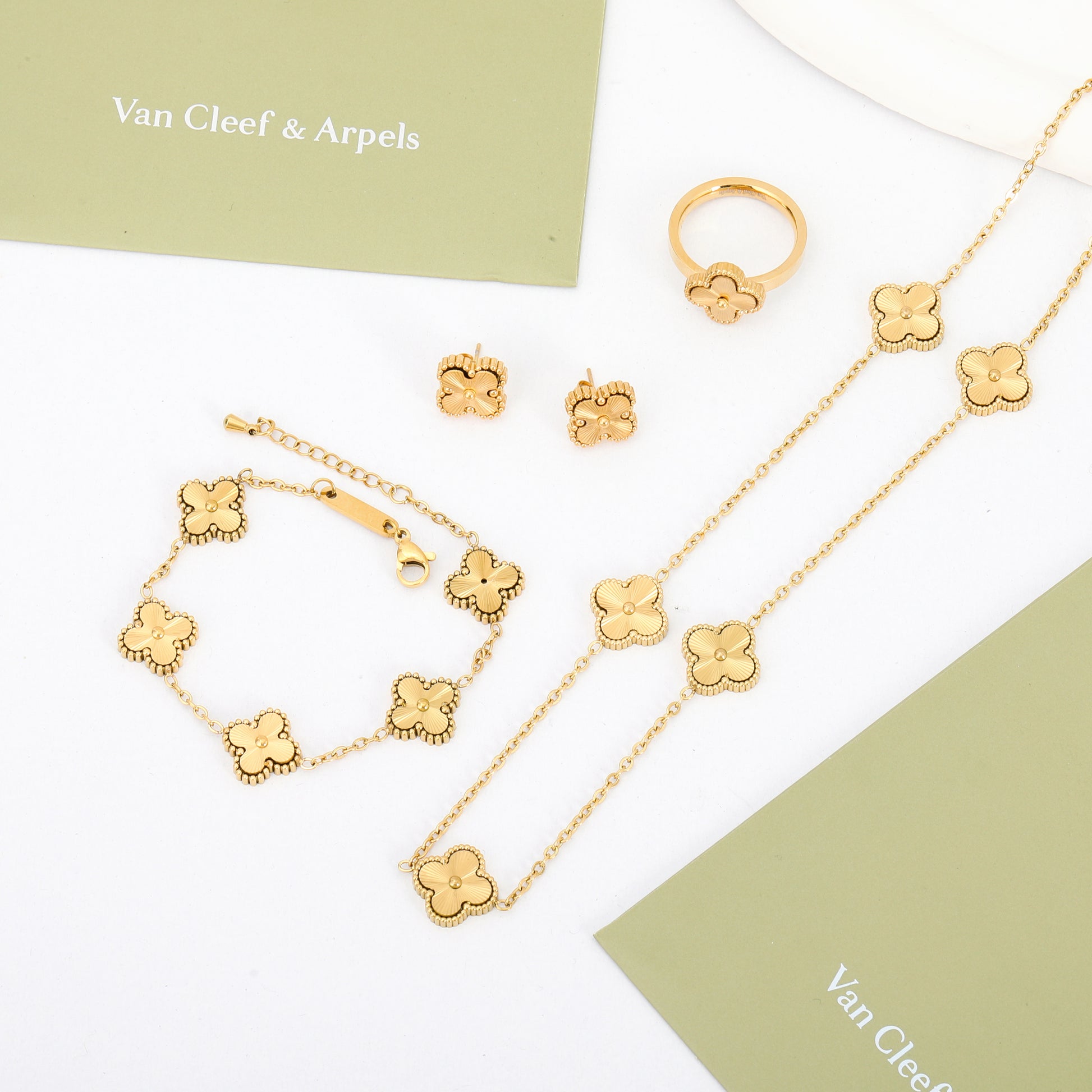 🌷 طقم فان كليف 4 قطع ذهبي سادة