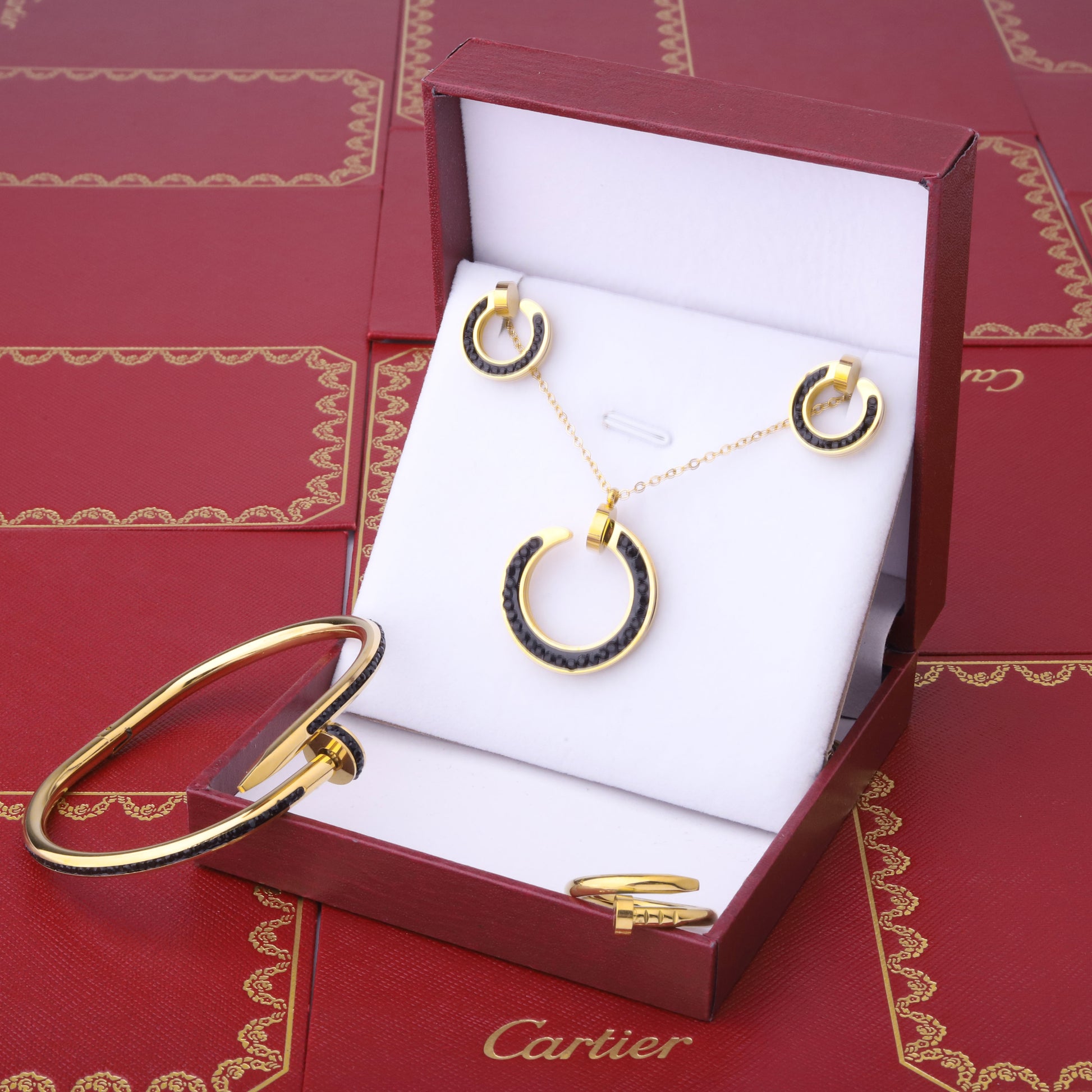 ✨ طقم كارتير مسمار - ذهبي وزركون أسود ✨