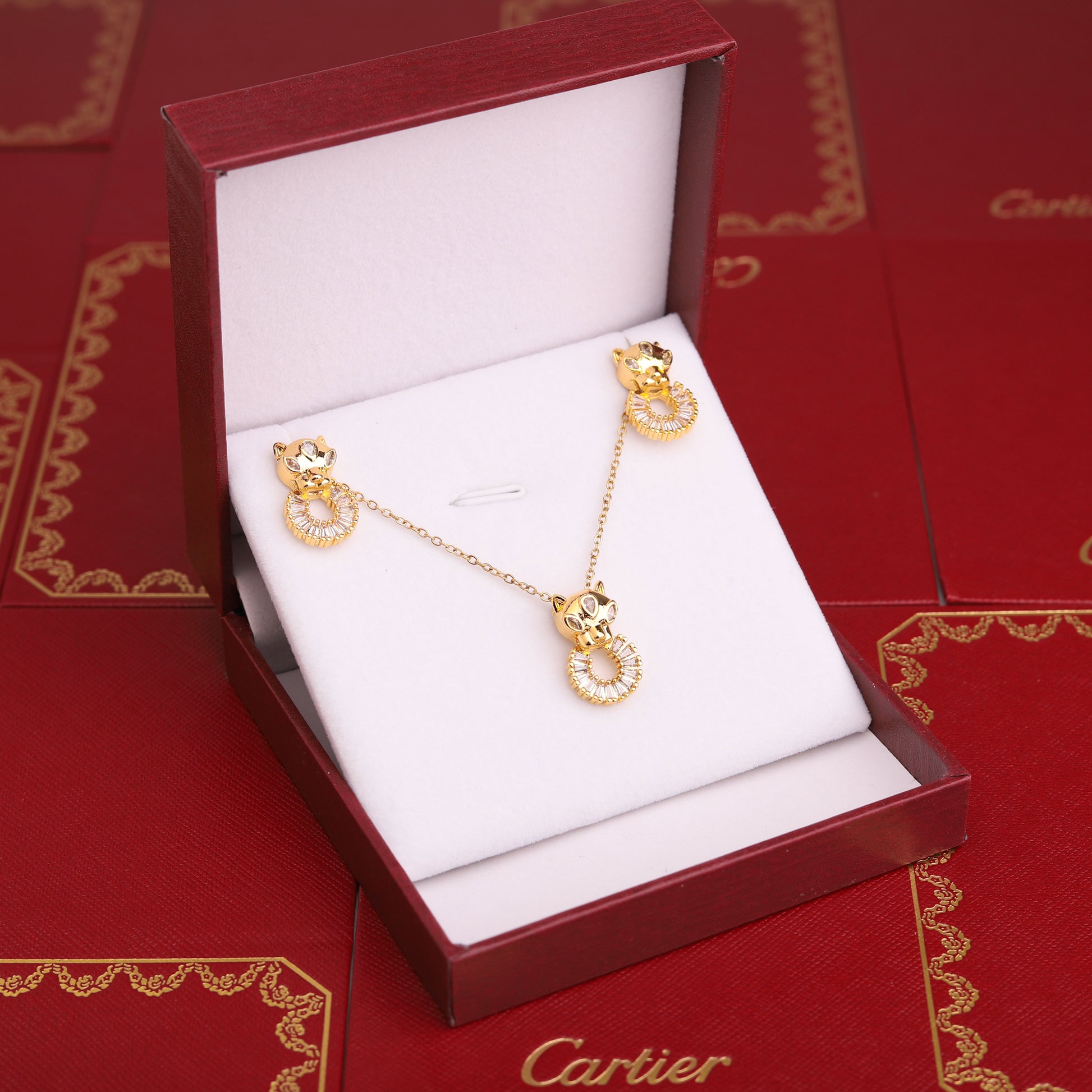 ✨ طقم كارتير نمر - قطعتين بزركون ذهبي ✨