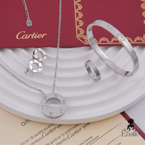 ✨ طقم كارتير - 4 قطع فضي زركون ✨