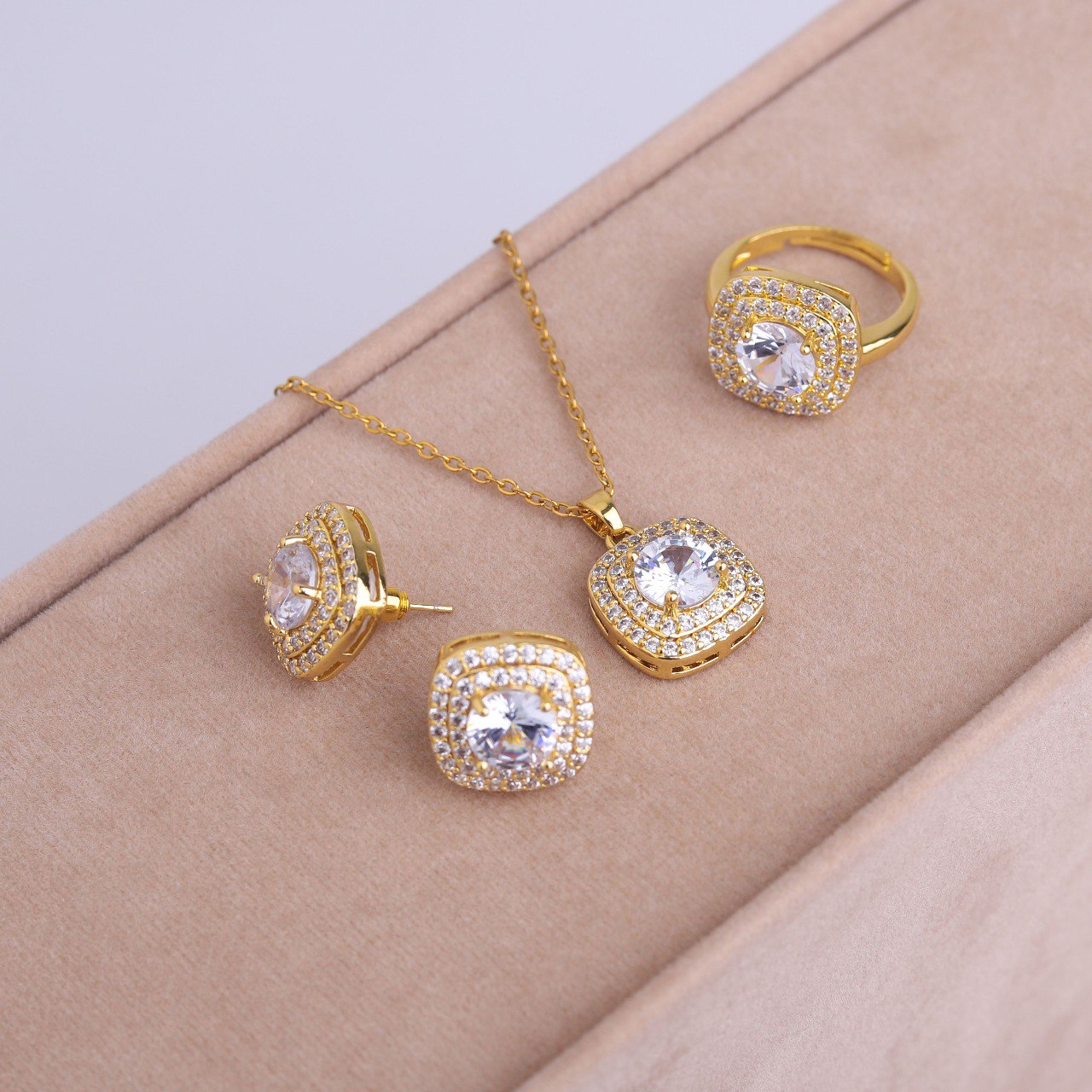💛💎 طقم لازوردي مربع 3 قطع ذهبي مرصع بالزركون – الأناقة الذهبية تتجسد في كل تفصيلة. ✨