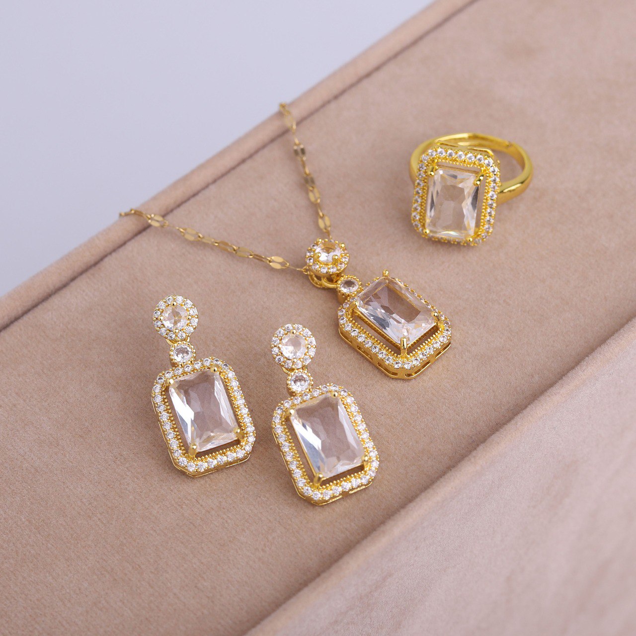 ✨ طقم لازوردي – 3 قطع ذهبي فل زركون ✨