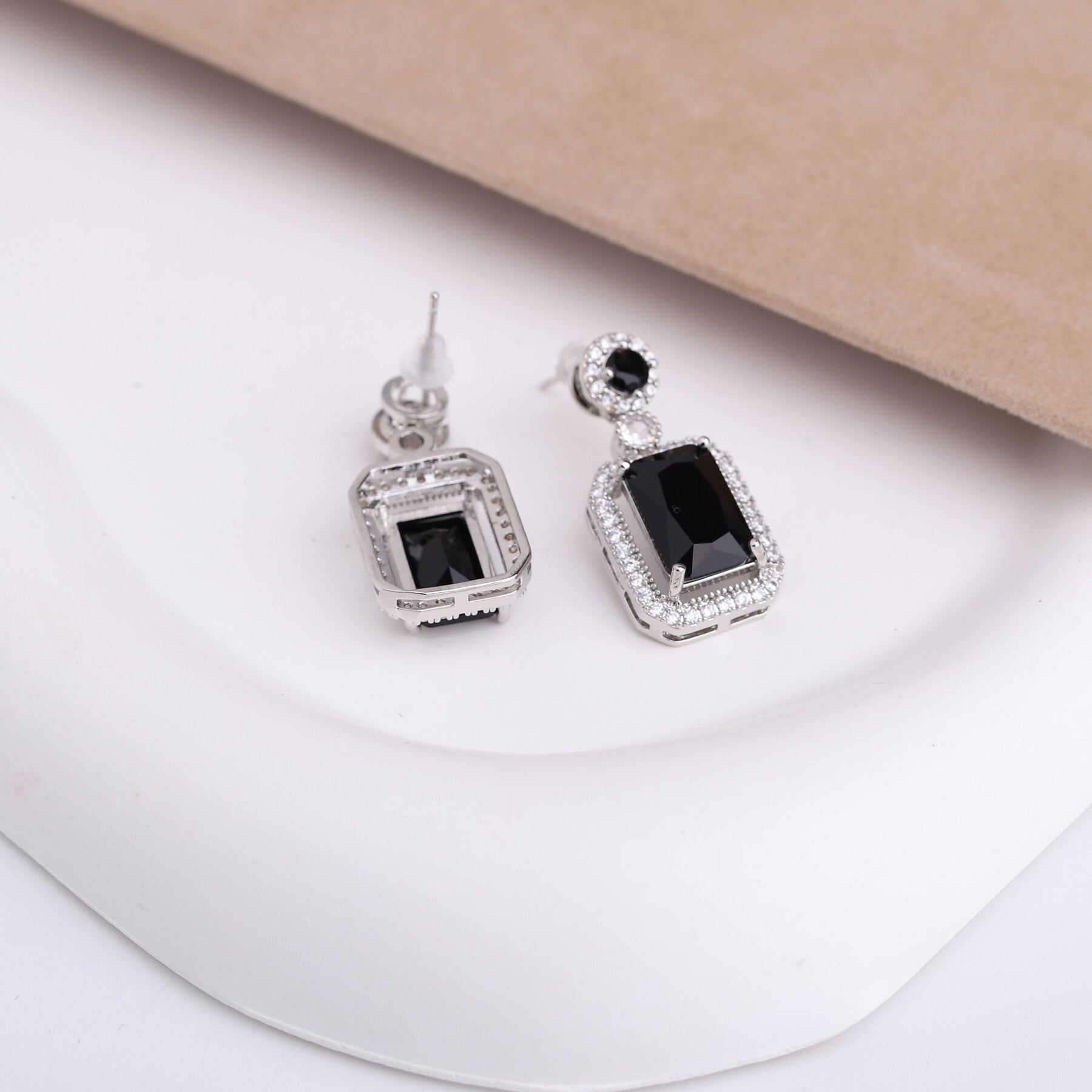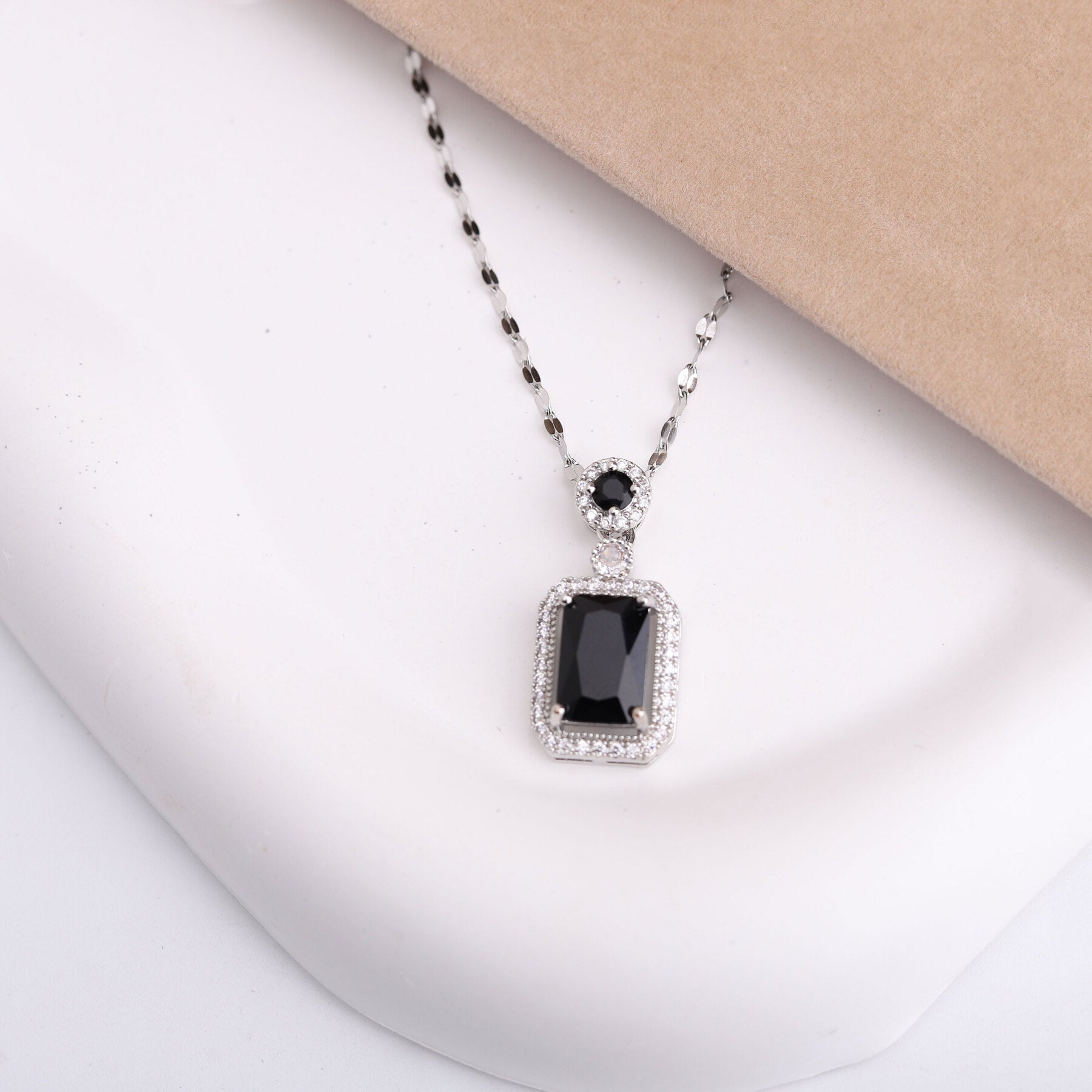 🤍🖤 طقم لازوردي 3 قطع فضي بزركون أسود – الأناقة تتجسد في كل تفصيلة. ✨