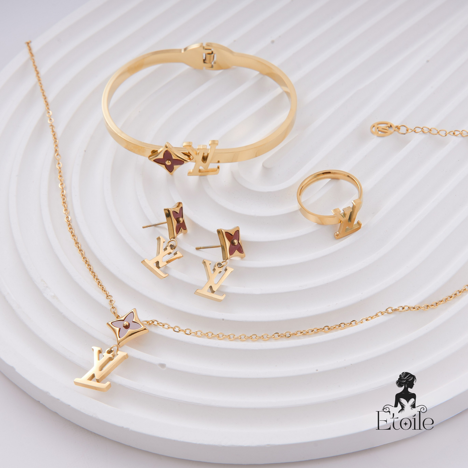 معدن مطلي بجودة عالية مقاوم لتغير اللون، مع لمسات براقة تضيف فخامة على كل قطعة