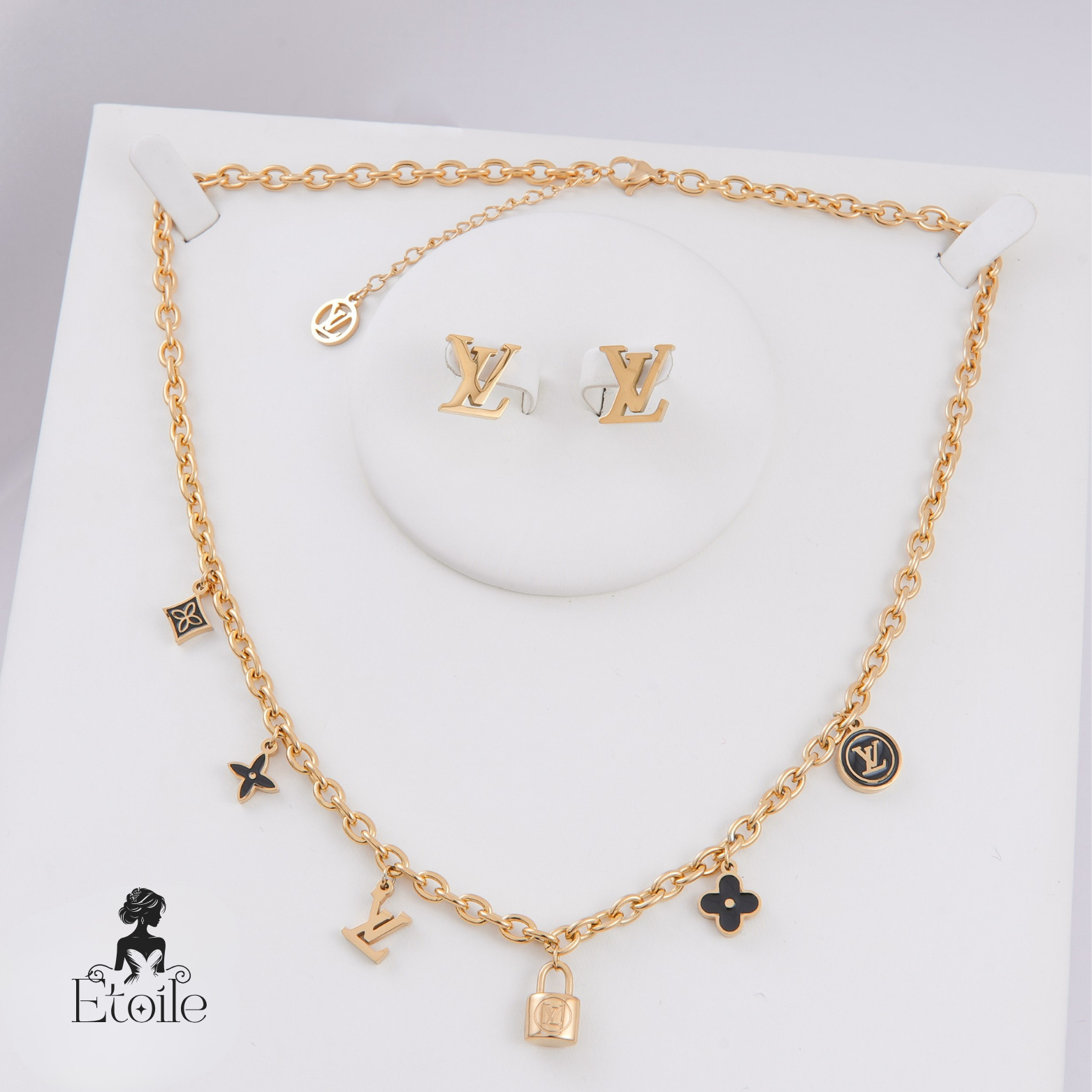 طقم لويس فيتون LV يتضمن قفل طويل أنيق، يمنحك إطلالة متألقة وجذابة في كل المناسبات ويبرز ذوقك الراقي.