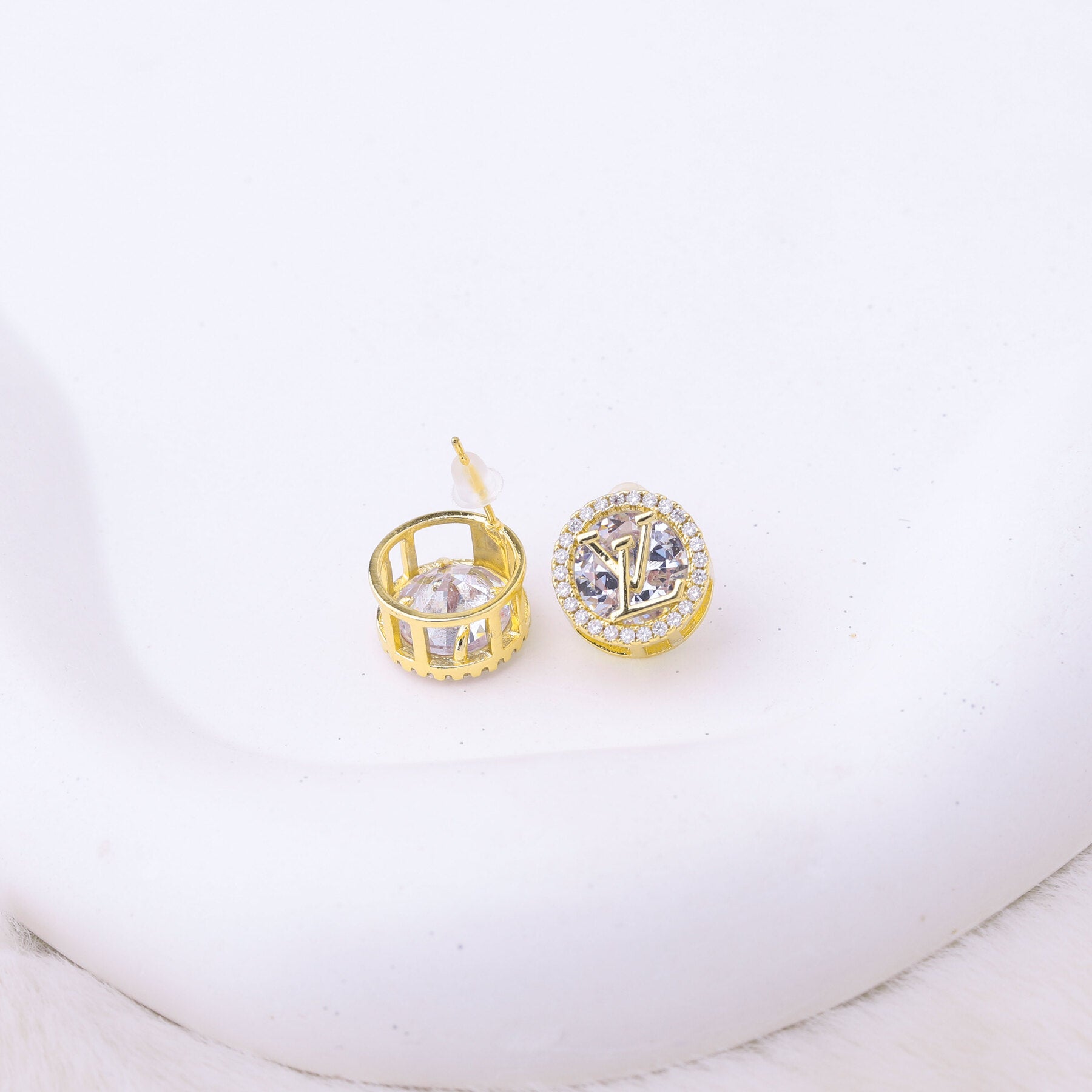 طقم LV تصميم مدور مرصّع بزركون باللون الذهبي، يمنحك إطلالة راقية وبراقة تلفت الأنظار ✨